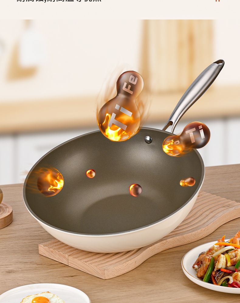 両面チタン炒め鍋チタンコーティングは鍋家庭用のフライパン炒め鍋にくっつかない