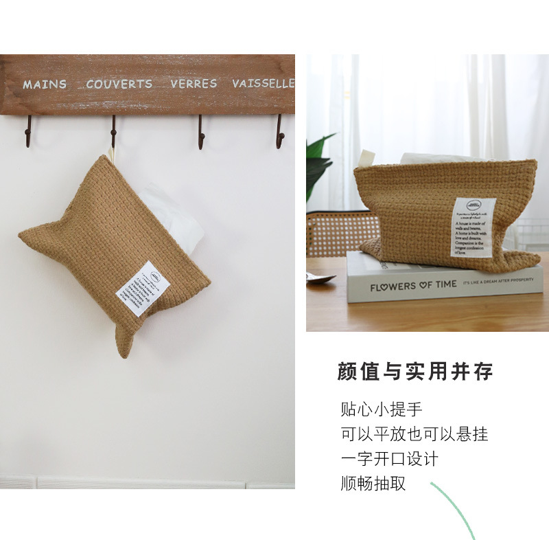 美作要素織りデスクトップティッシュボックスinsシンプル家庭用引き出し紙箱多機能車載吊りティッシュ袋