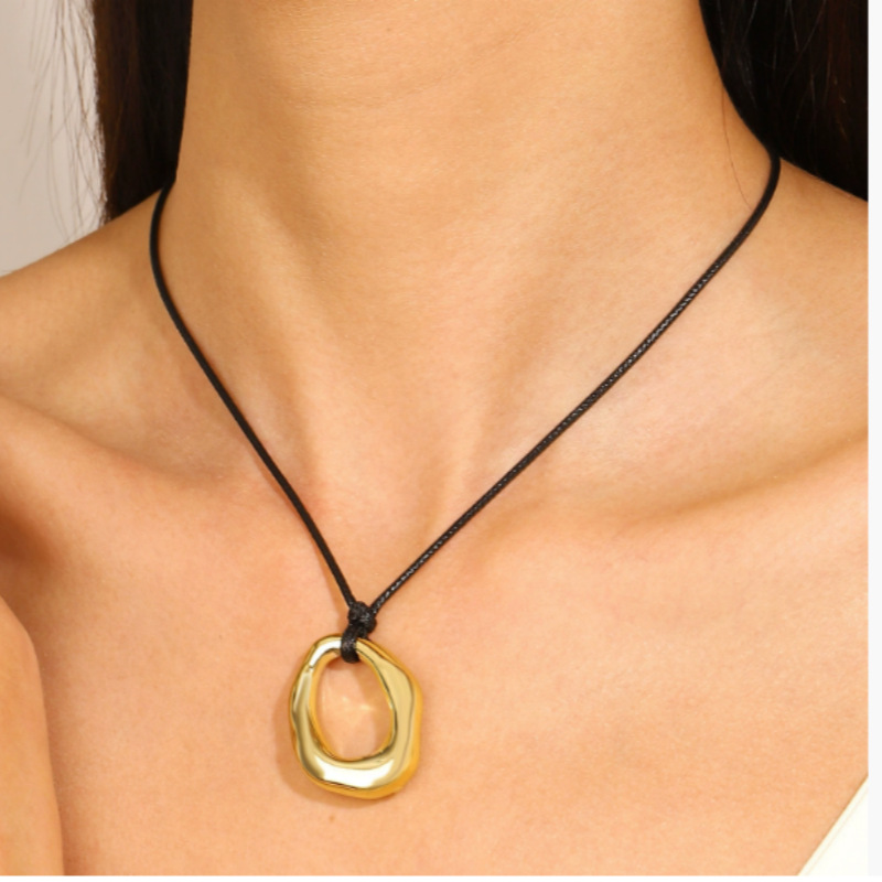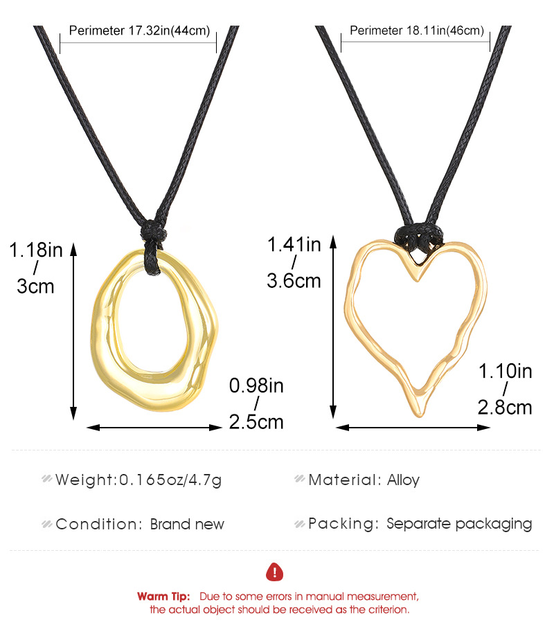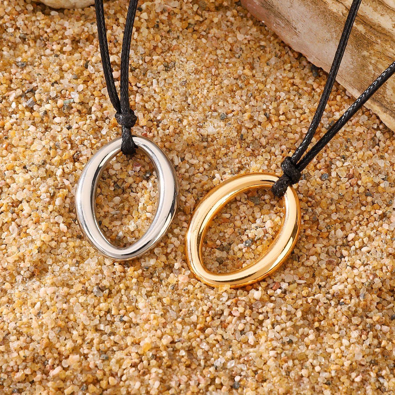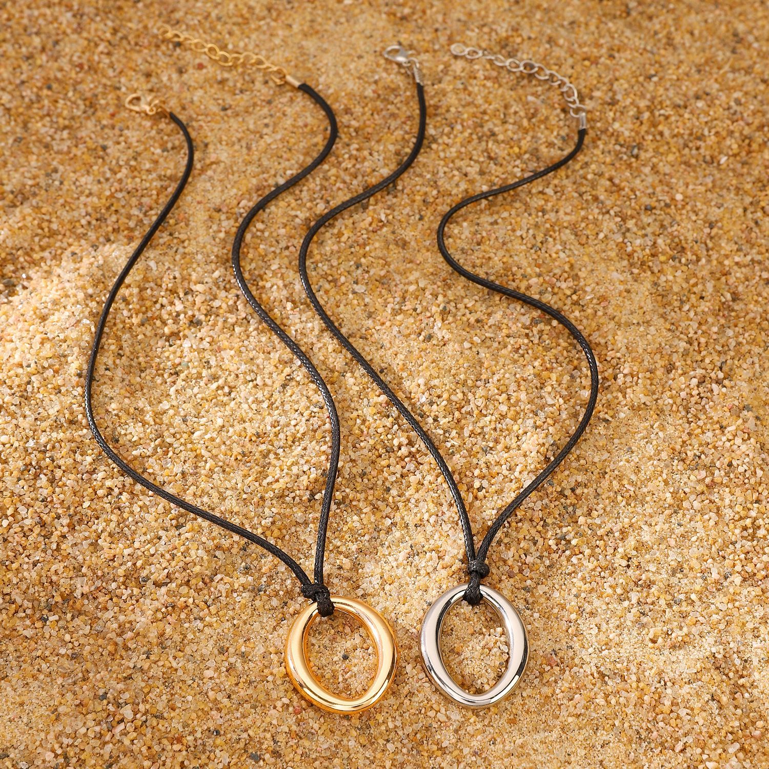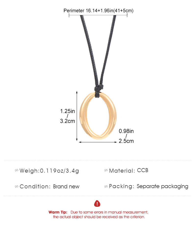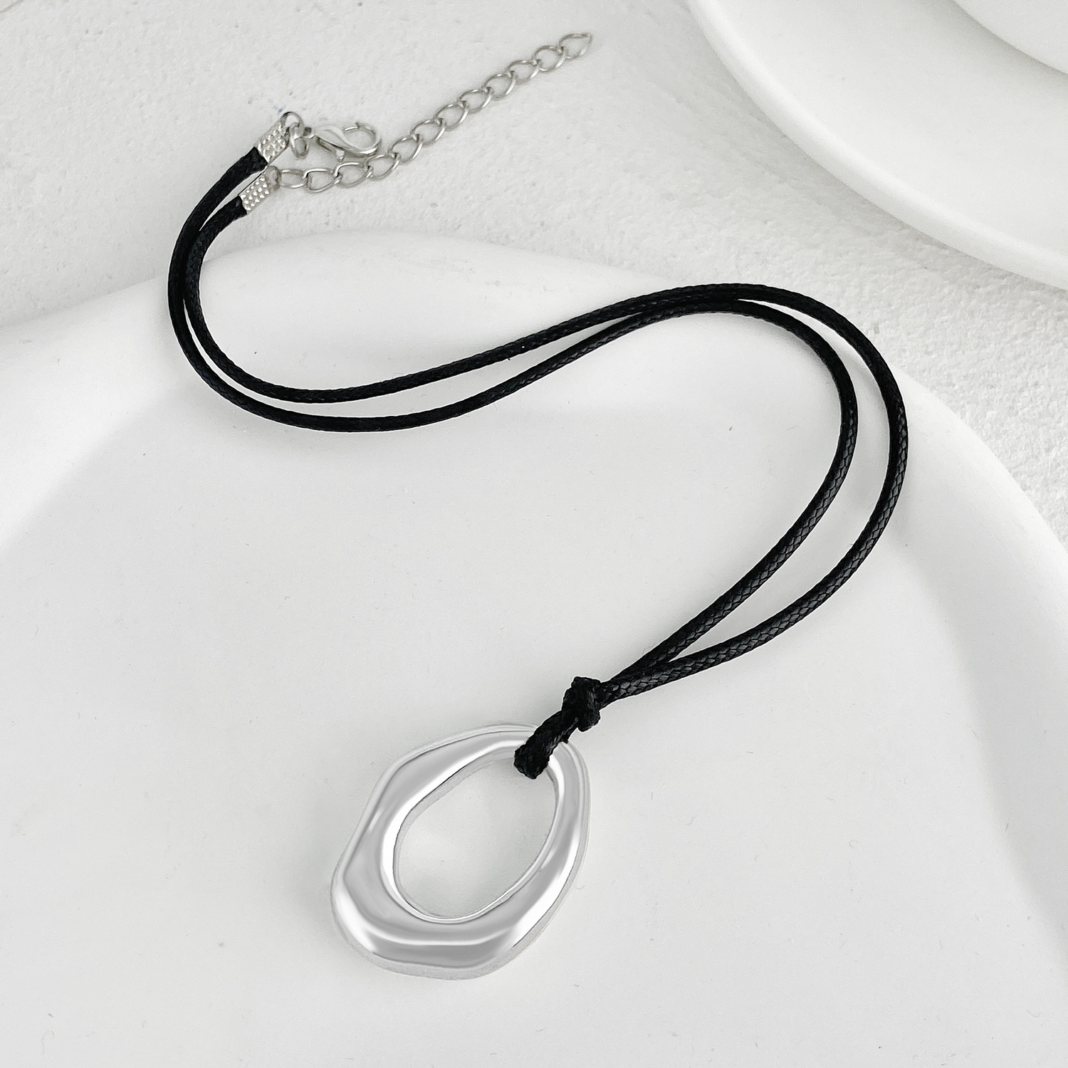欧美跨境饰品个性不规则心形镂空吊坠项链女简约几何椭圆蜡绳项饰