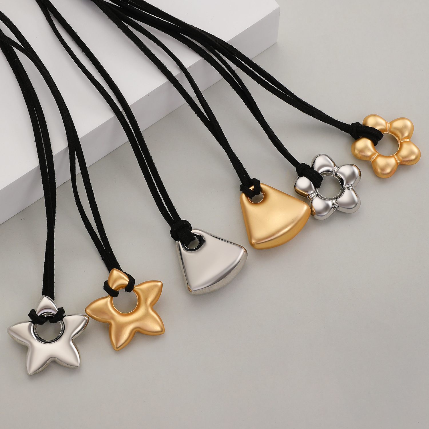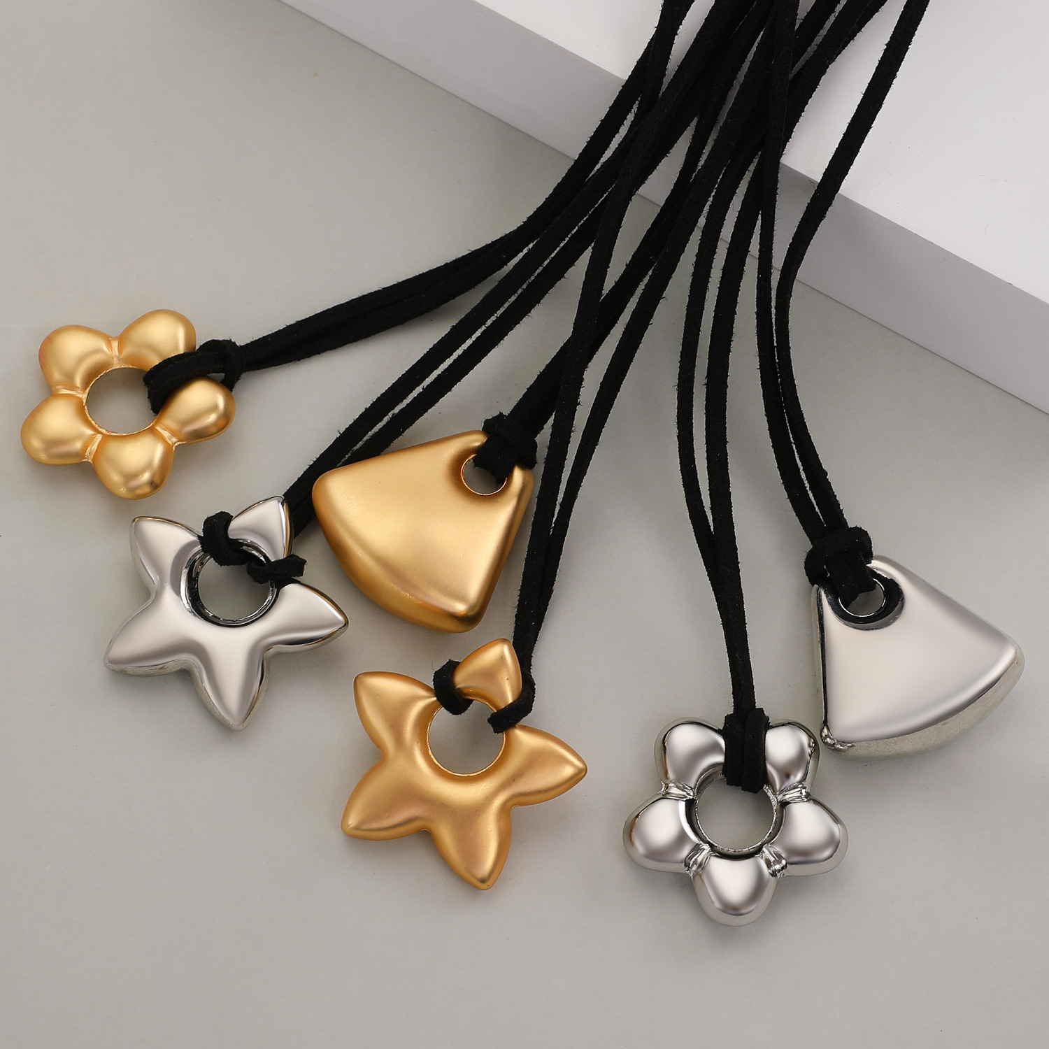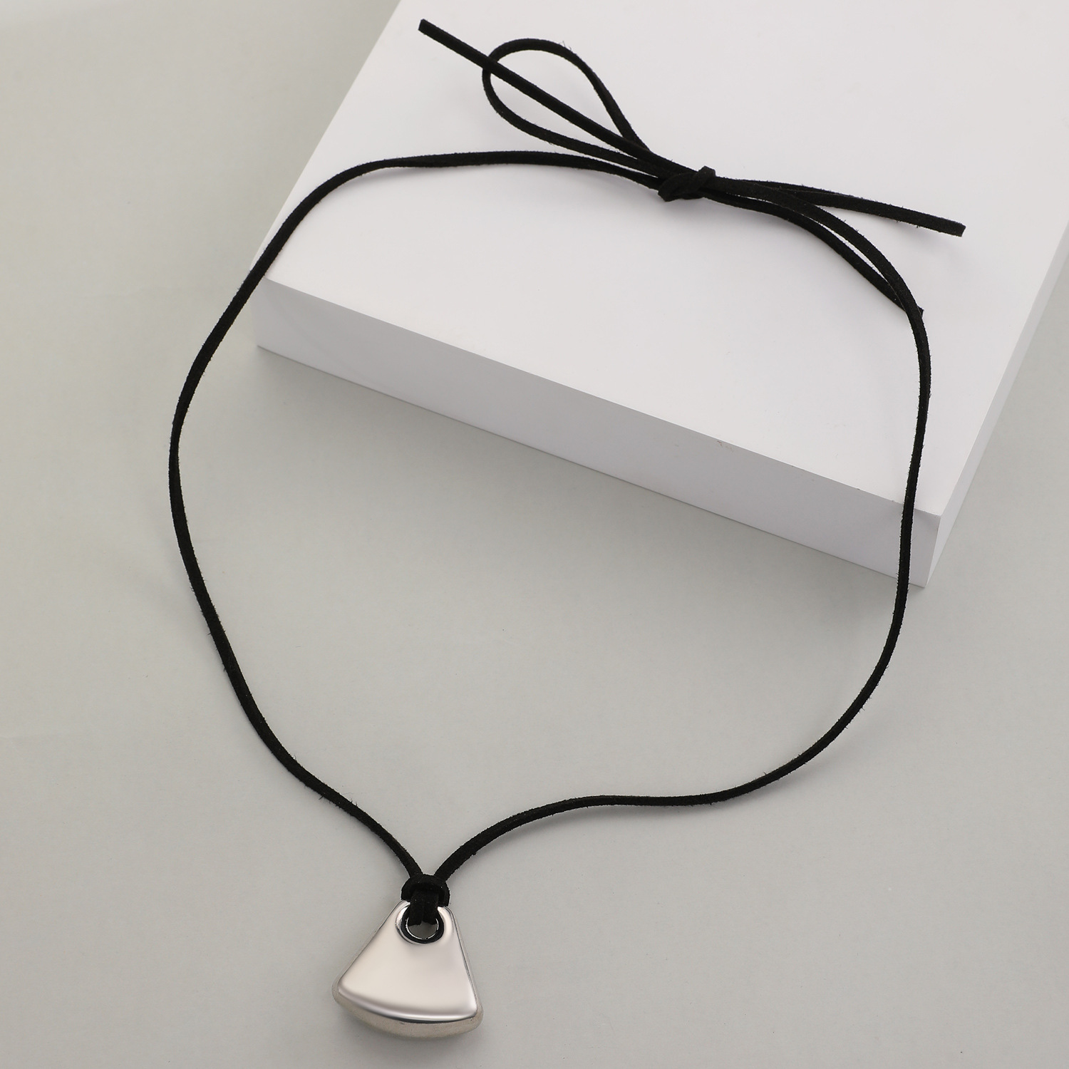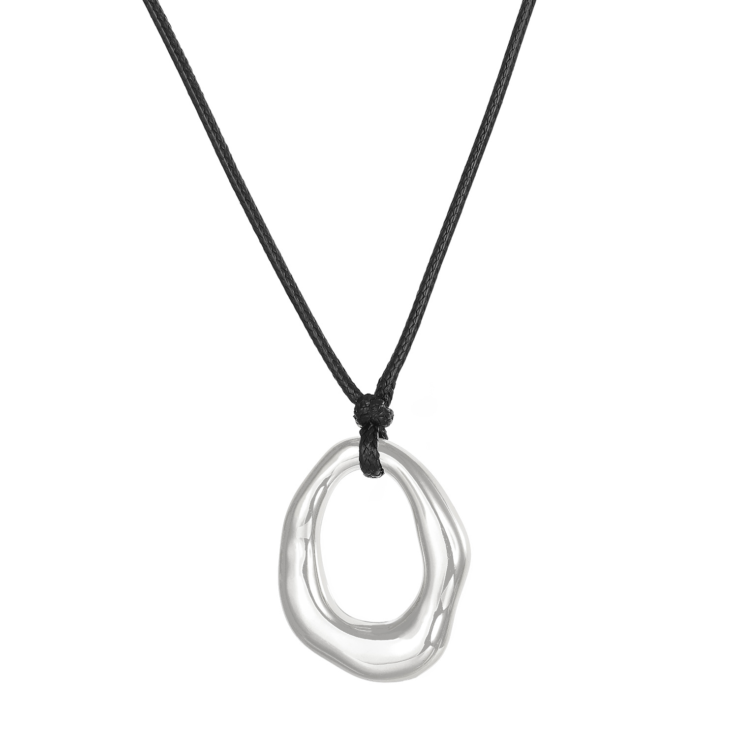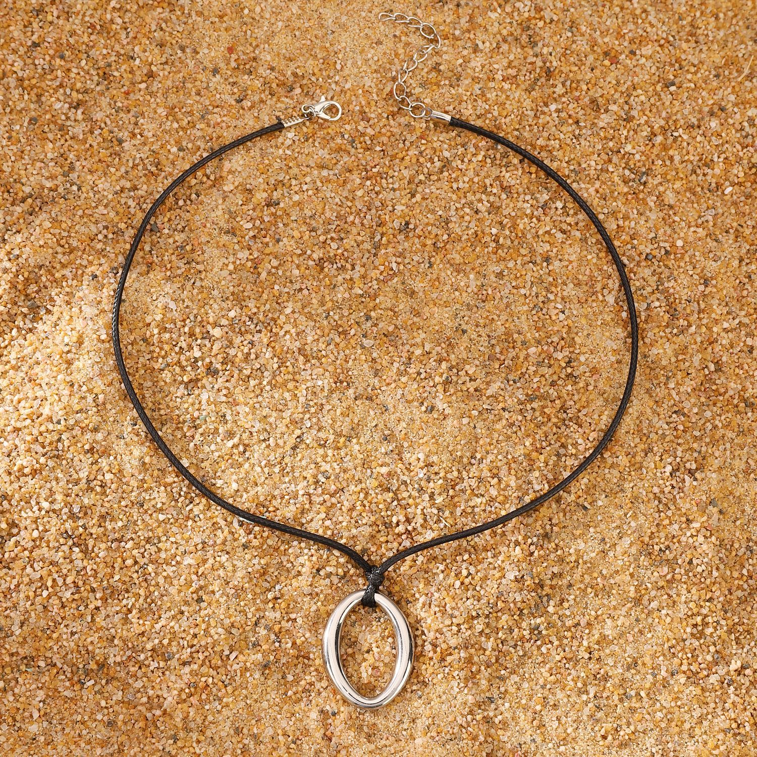 欧美跨境饰品个性不规则心形镂空吊坠项链女简约几何椭圆蜡绳项饰