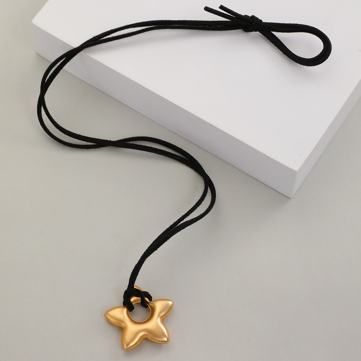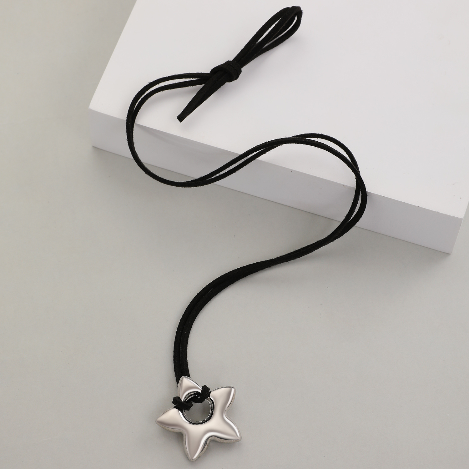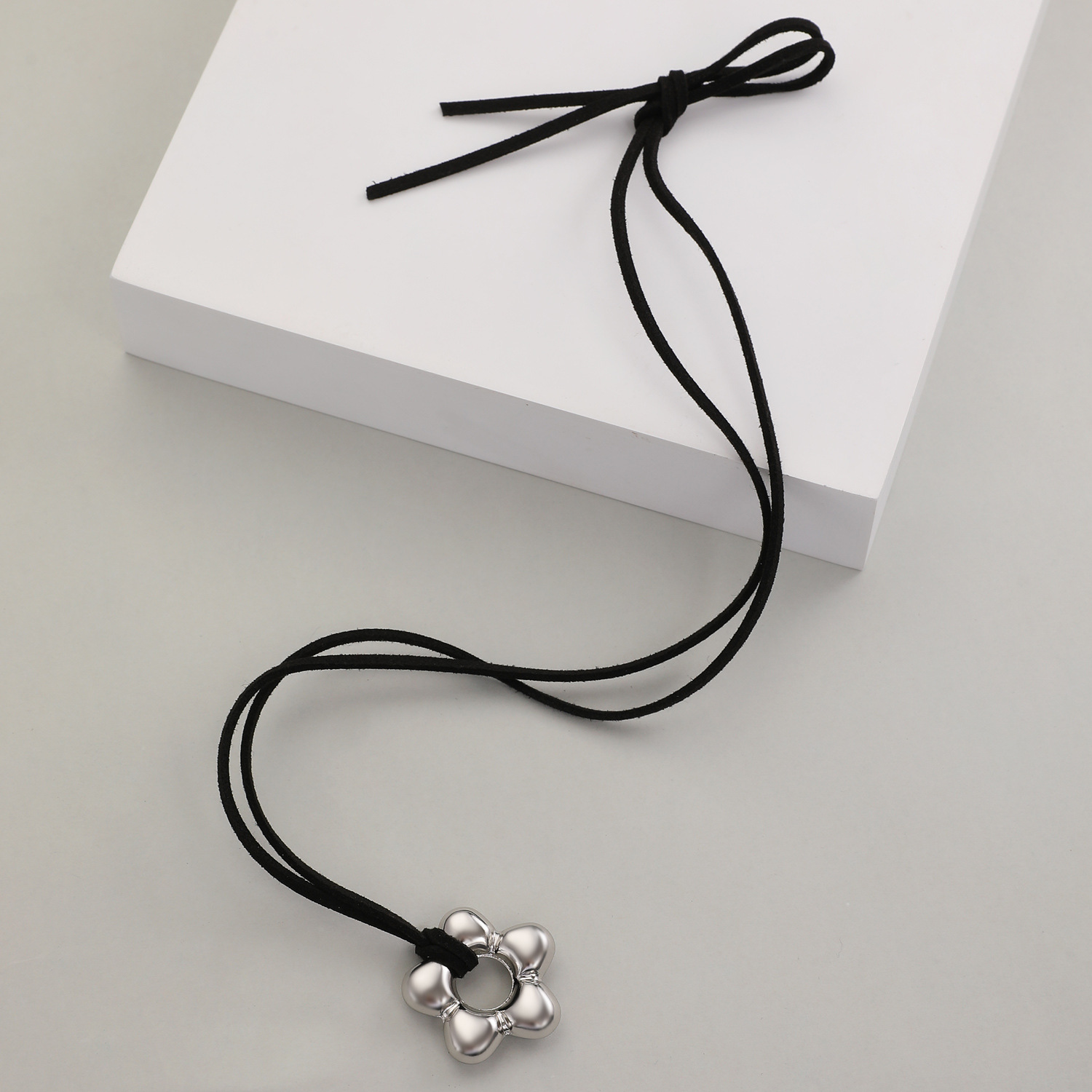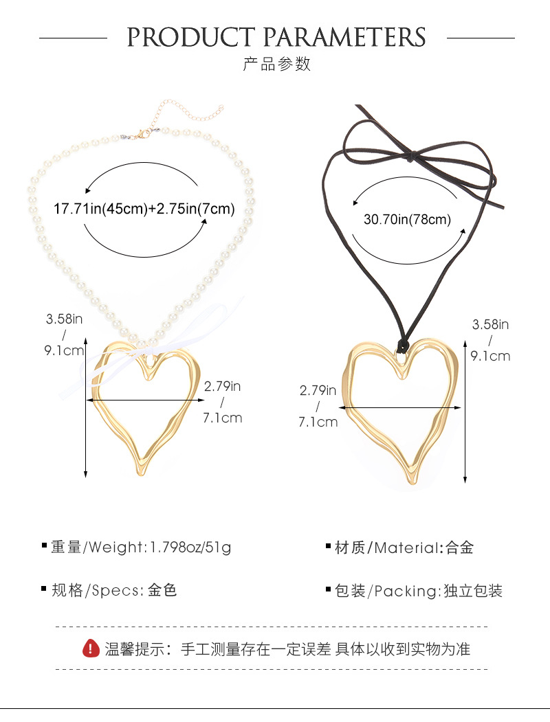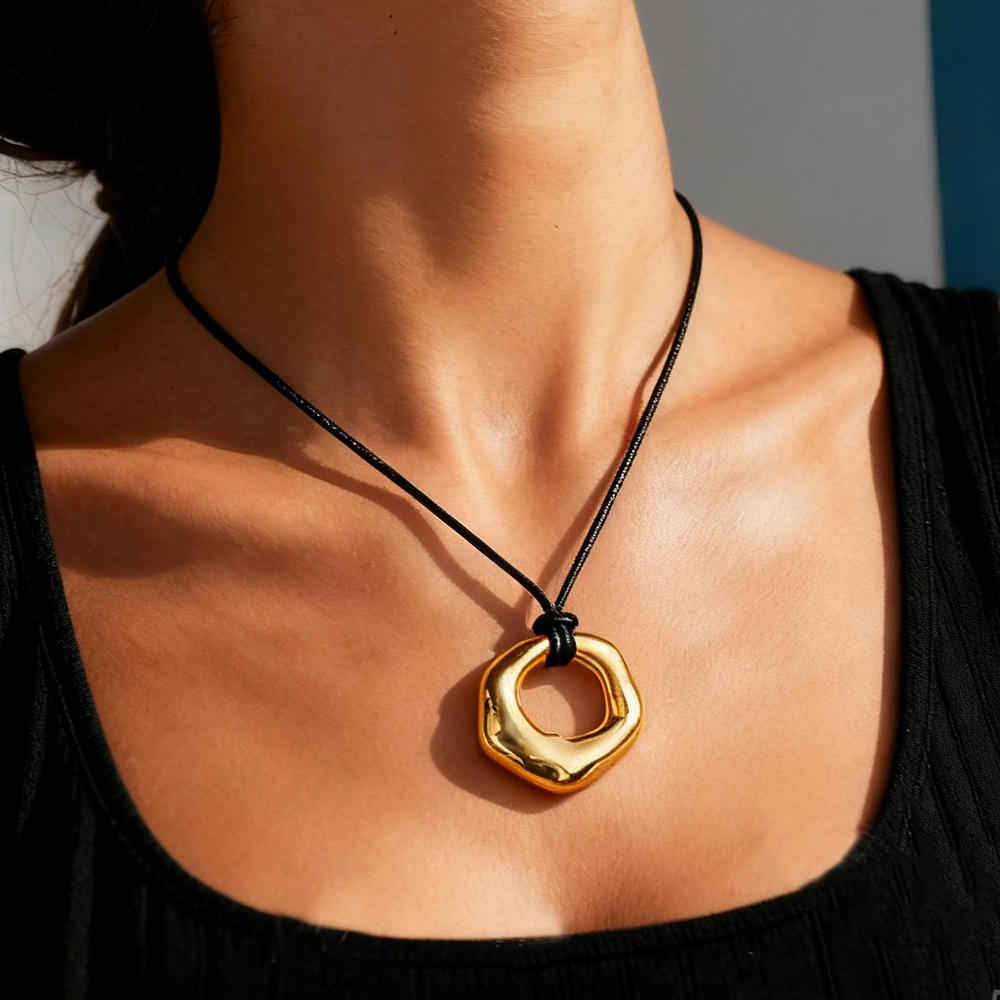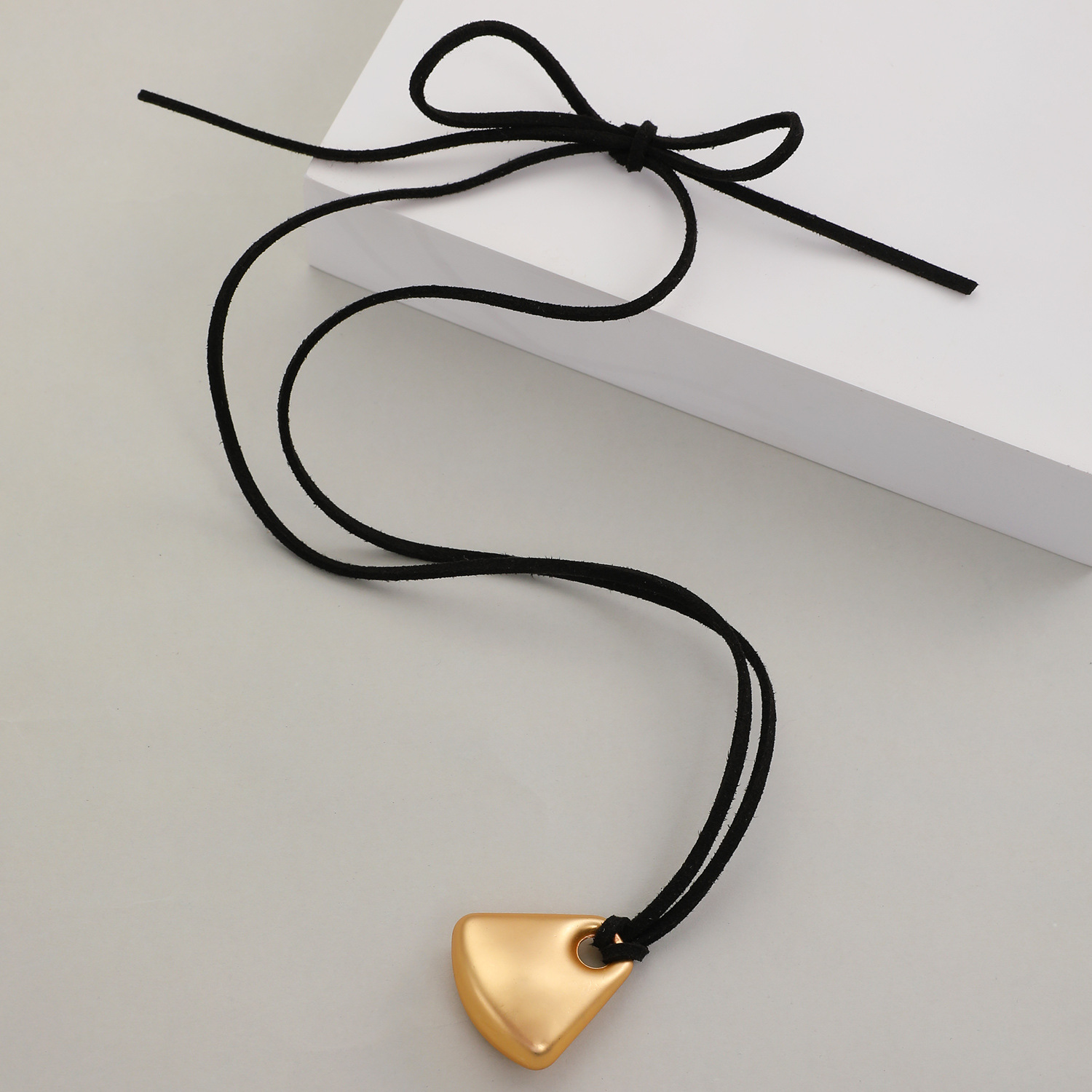 欧美跨境饰品个性不规则心形镂空吊坠项链女简约几何椭圆蜡绳项饰