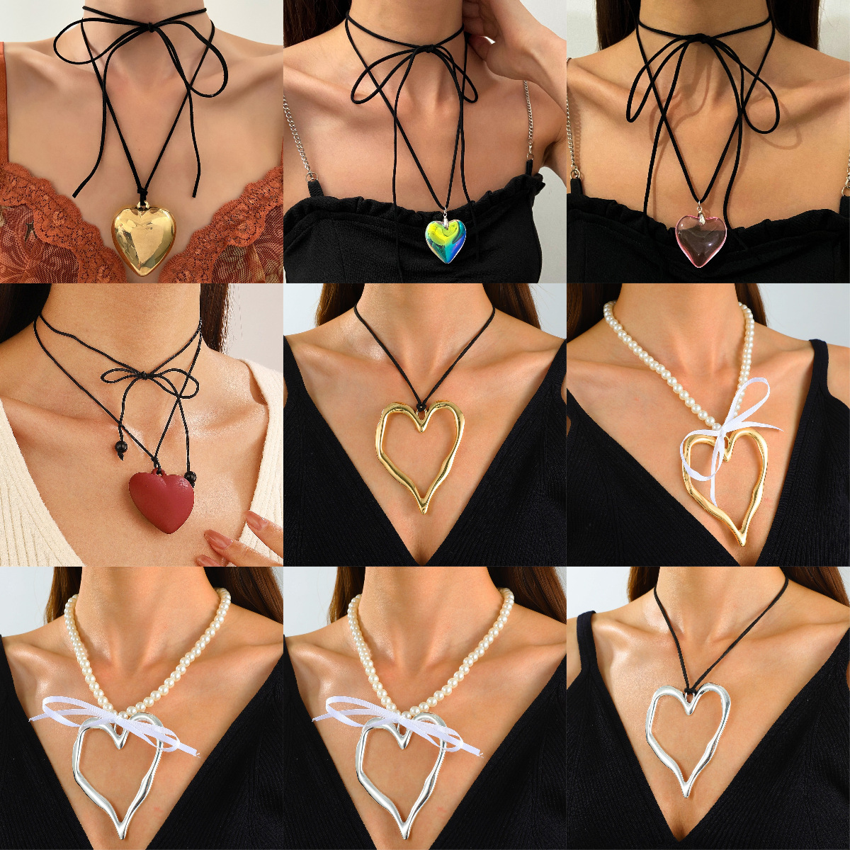 欧米の国境を越えて誇張しているギャルの金属の愛のネックレスはシンプルで調節可能なベルベットのワックスの線のnecklaceアクセサリーです。