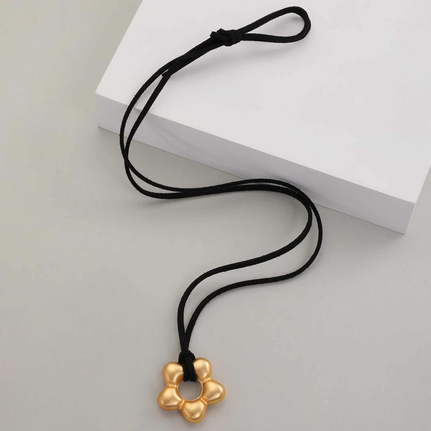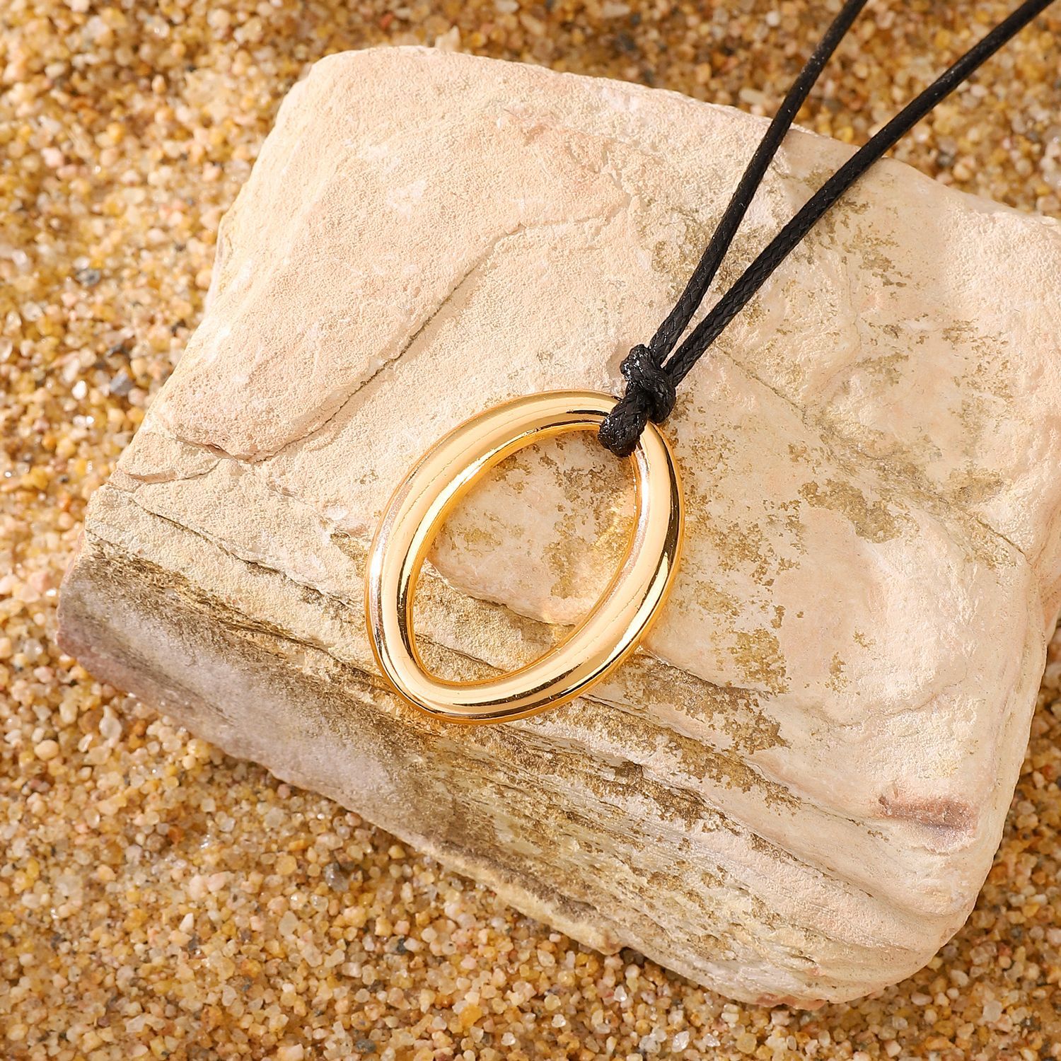 欧米風新作中空不規則円形ネックレス レディース 個性的デザイン オーバル型レザーロープ 調節可能 セーター用