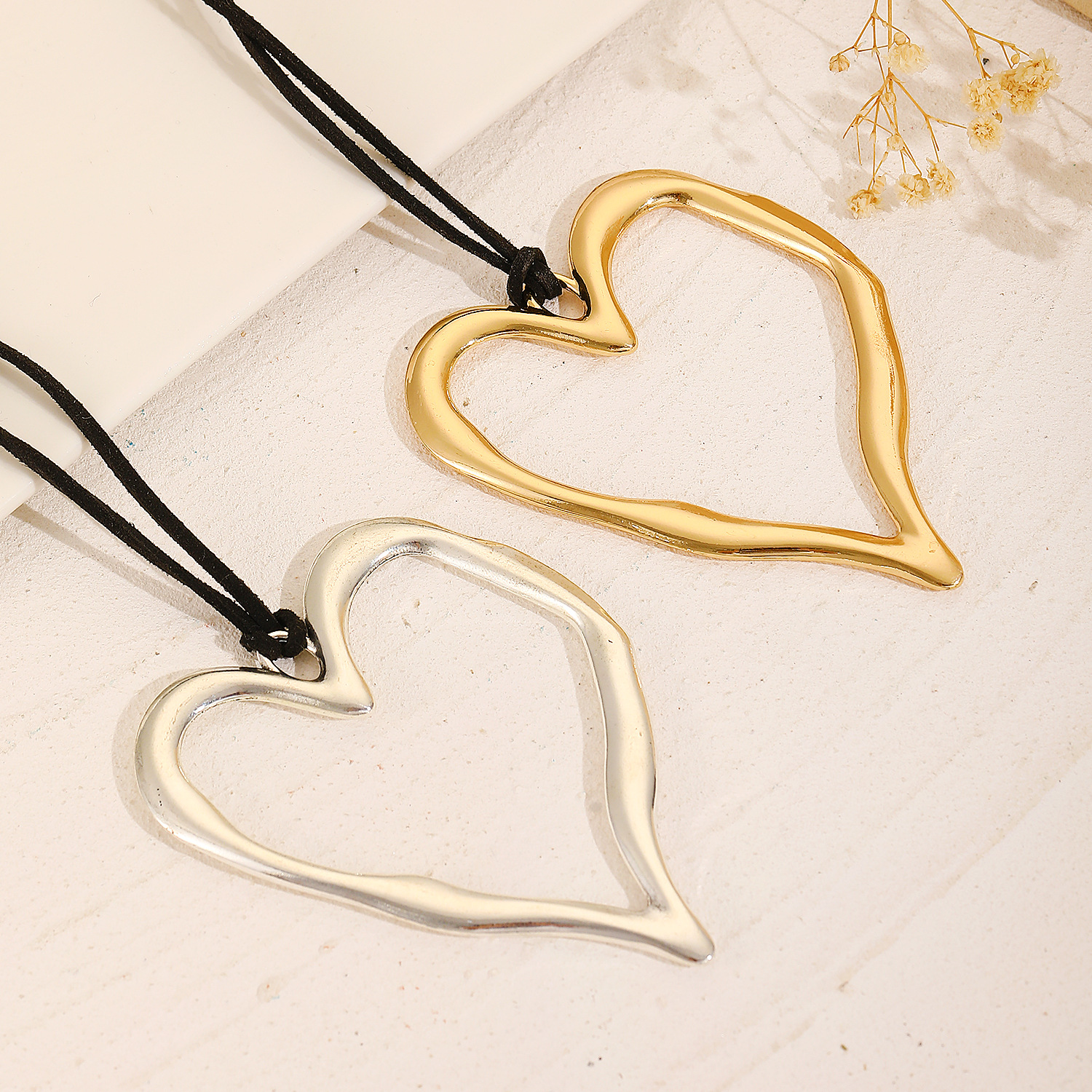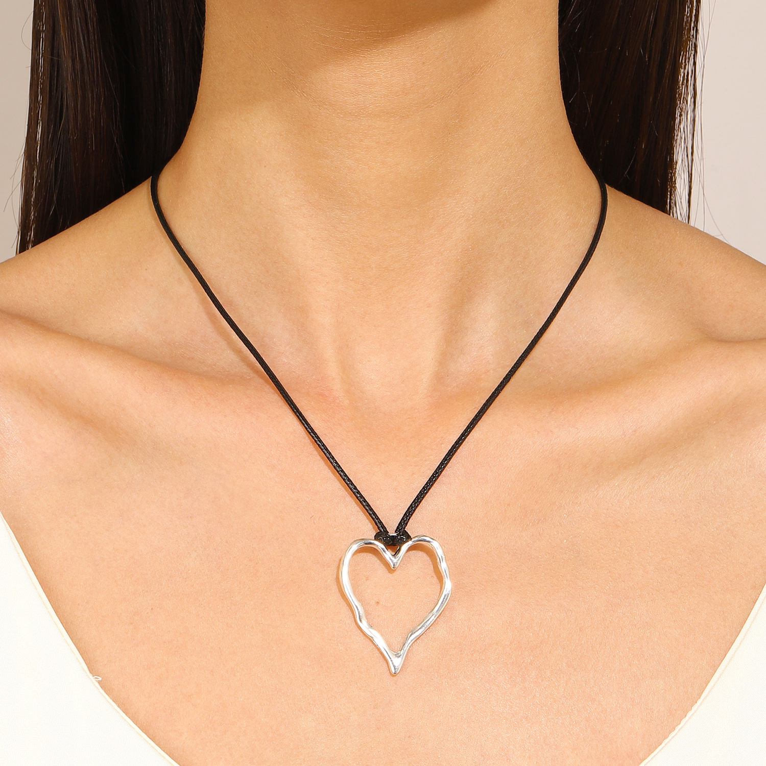 欧米のクロスボーダーのアクセサリーの個性の不規則なハート型の透かし彫りのペンダントのネックレスの女性のシンプルな幾何学の楕円の蝋紐のアクセサリー