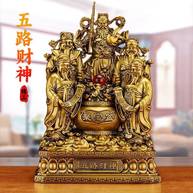 五路财神摆件元宝聚宝盆文武财神爷居家店铺招财供奉供台套装