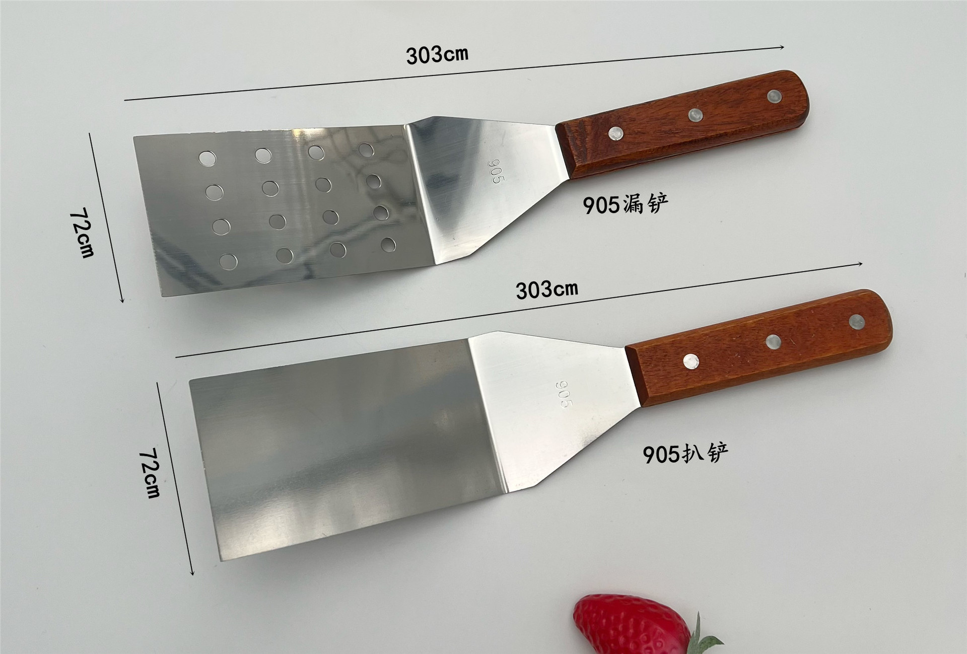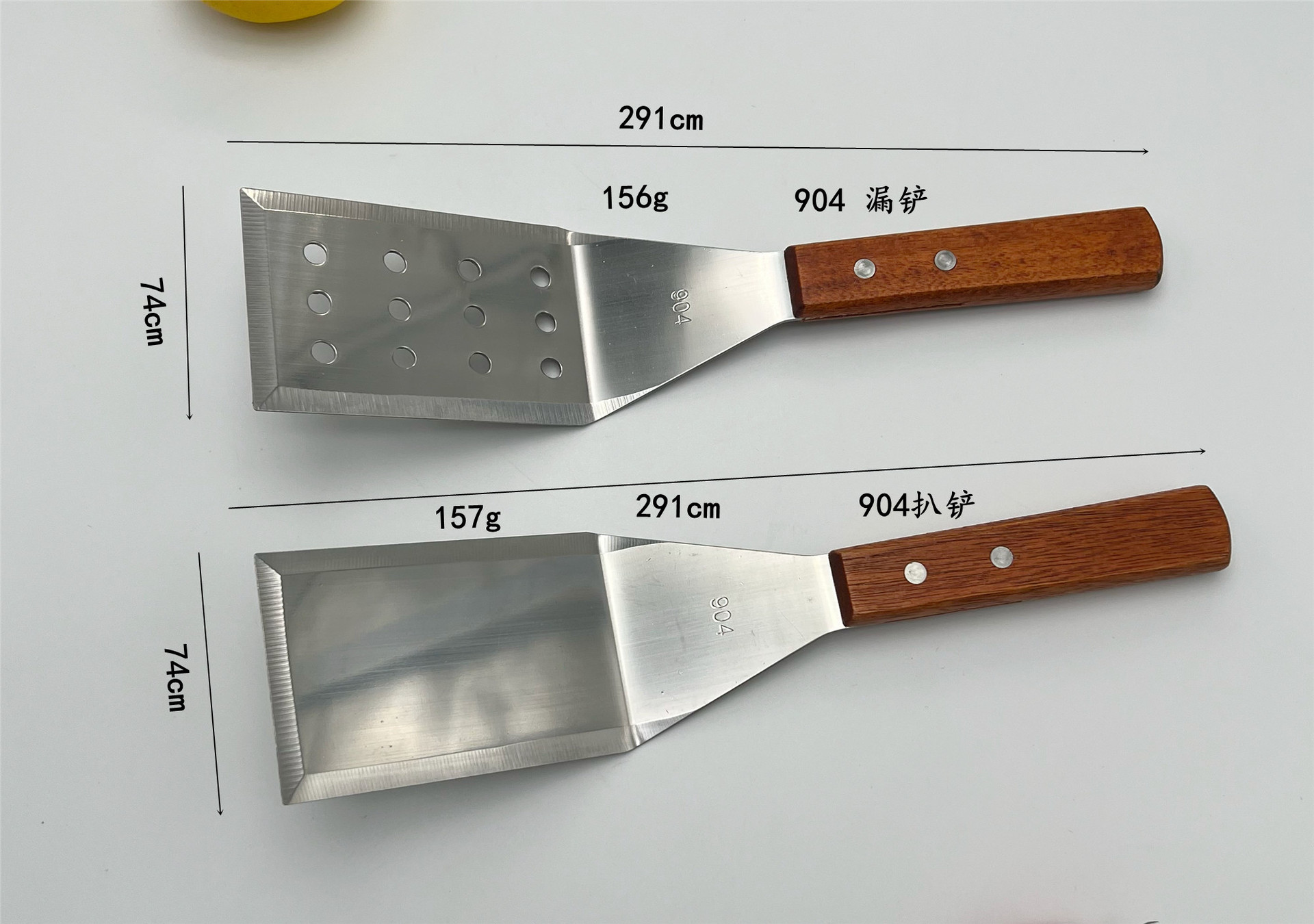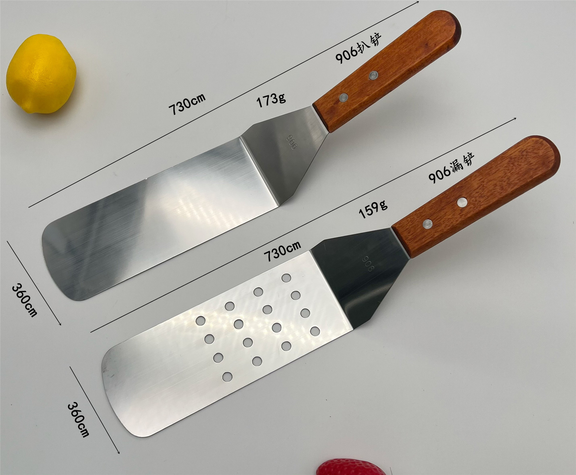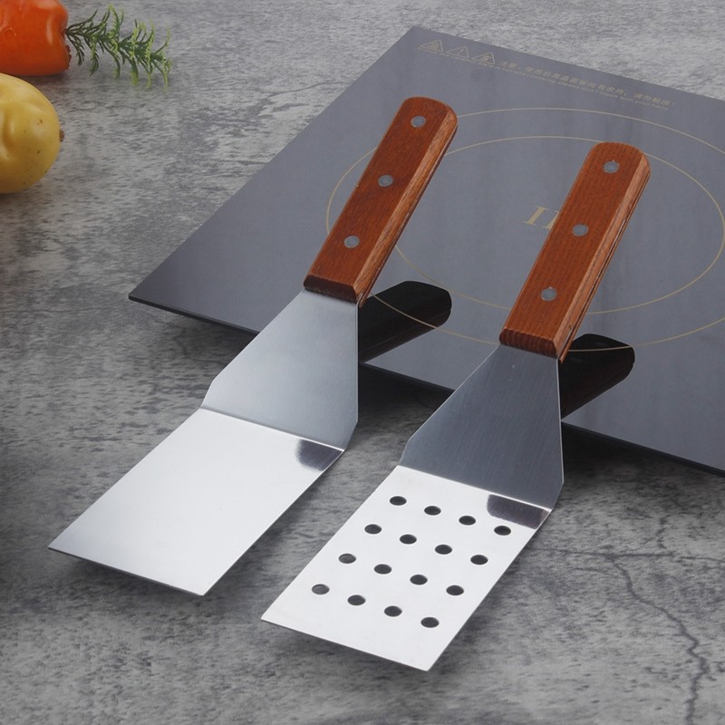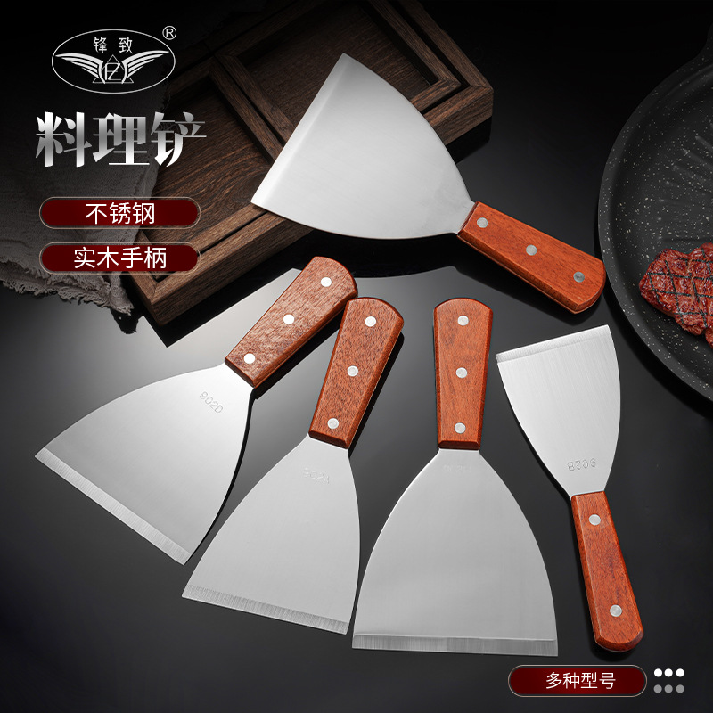 家用不锈钢餐具木柄铁板烧汉堡铲煎三边料理披萨厨房小工具