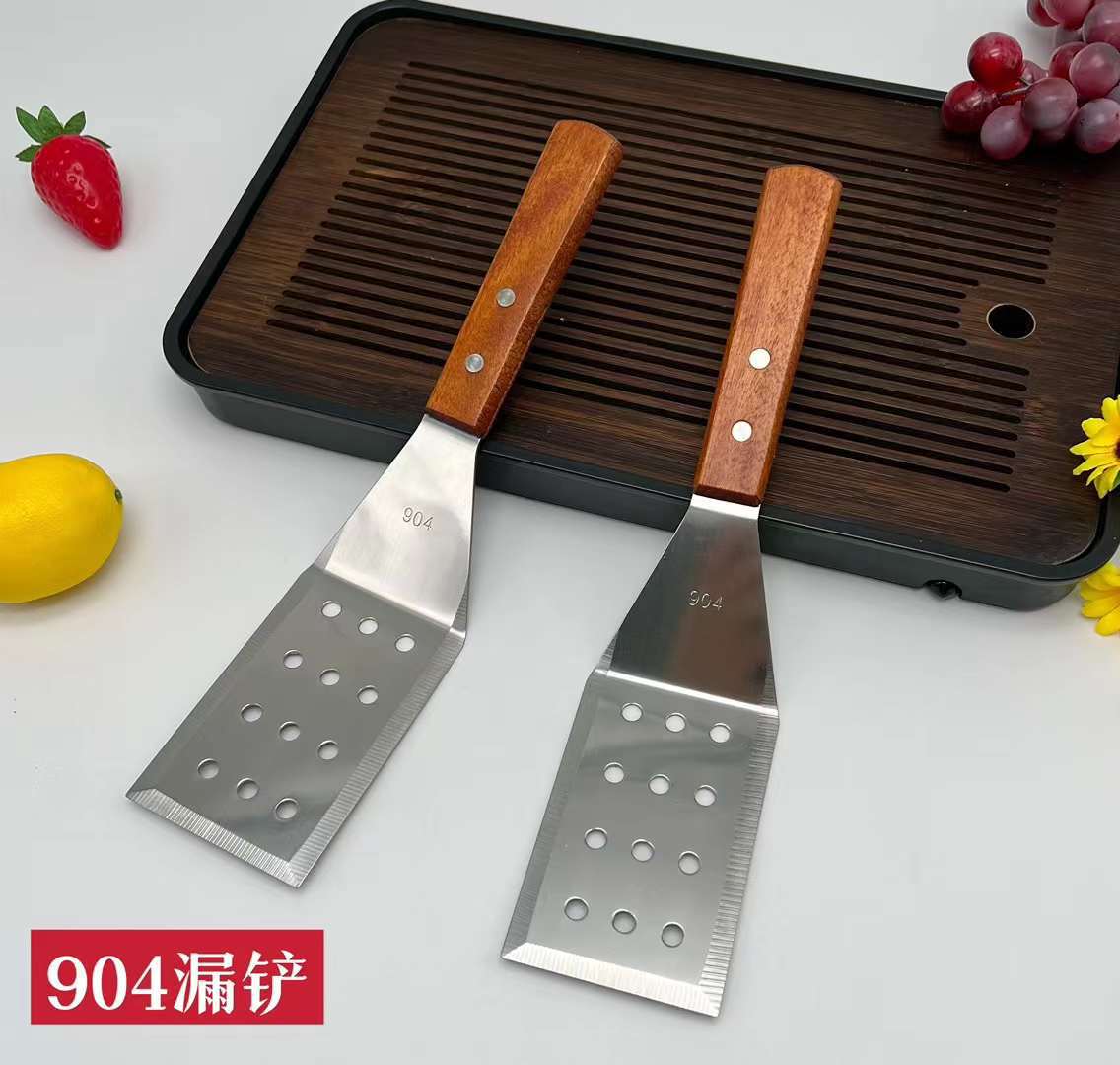 おおらかにステンレスのパンケーキをすくって、大きいサイズのシャベルをすくって、ステーキのシャベルの木の柄の手で餅のシャベルをつかんで、平シャベルの卸売りをします。