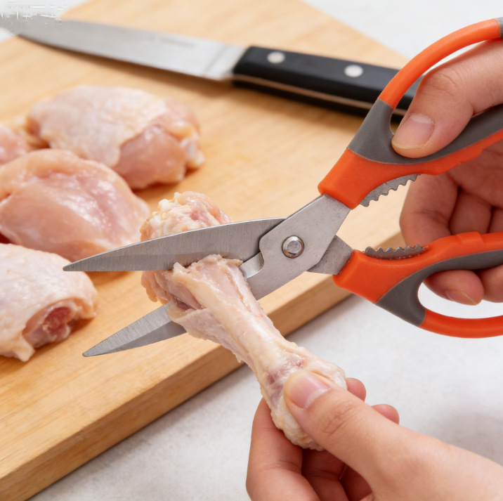 メーカーの台所はさみステンレスの骨切り冷蔵庫の骨切り食品の現物を切ります。
