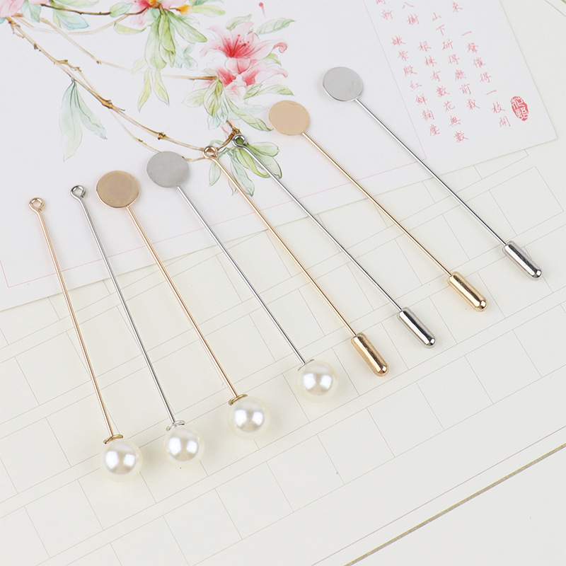 鋼片ピンブローチdiyアクセサリー真珠結婚一字胸花ピンピン結婚式手作り材料