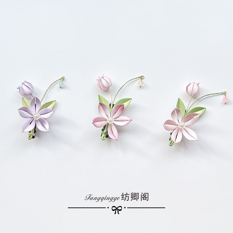 原创缠花多瓣桃花鸭嘴夹日常发饰百搭饰品古风汉服发夹边夹配饰
