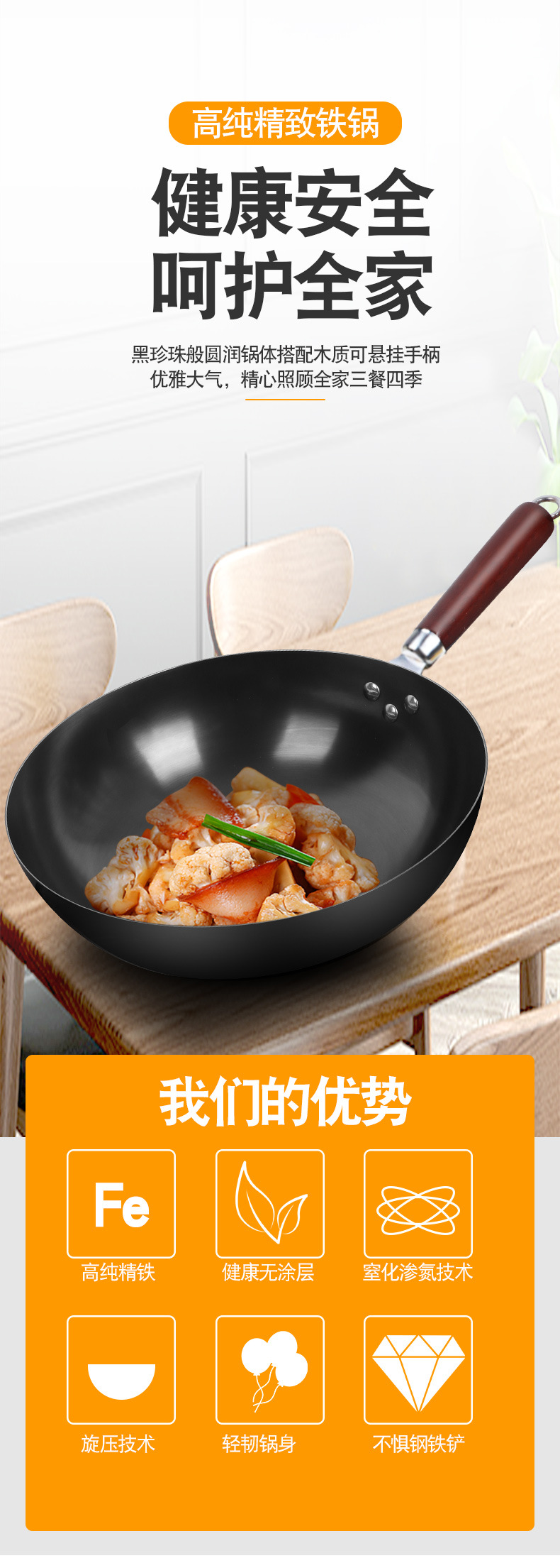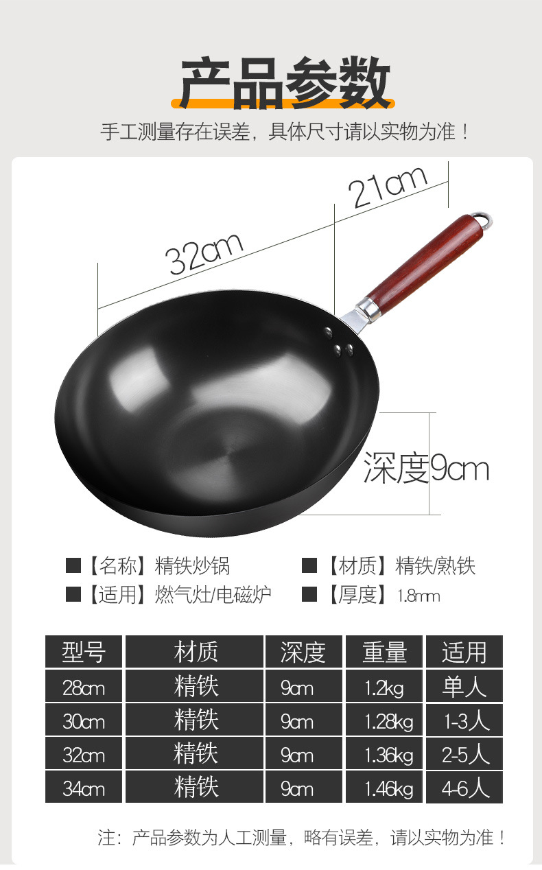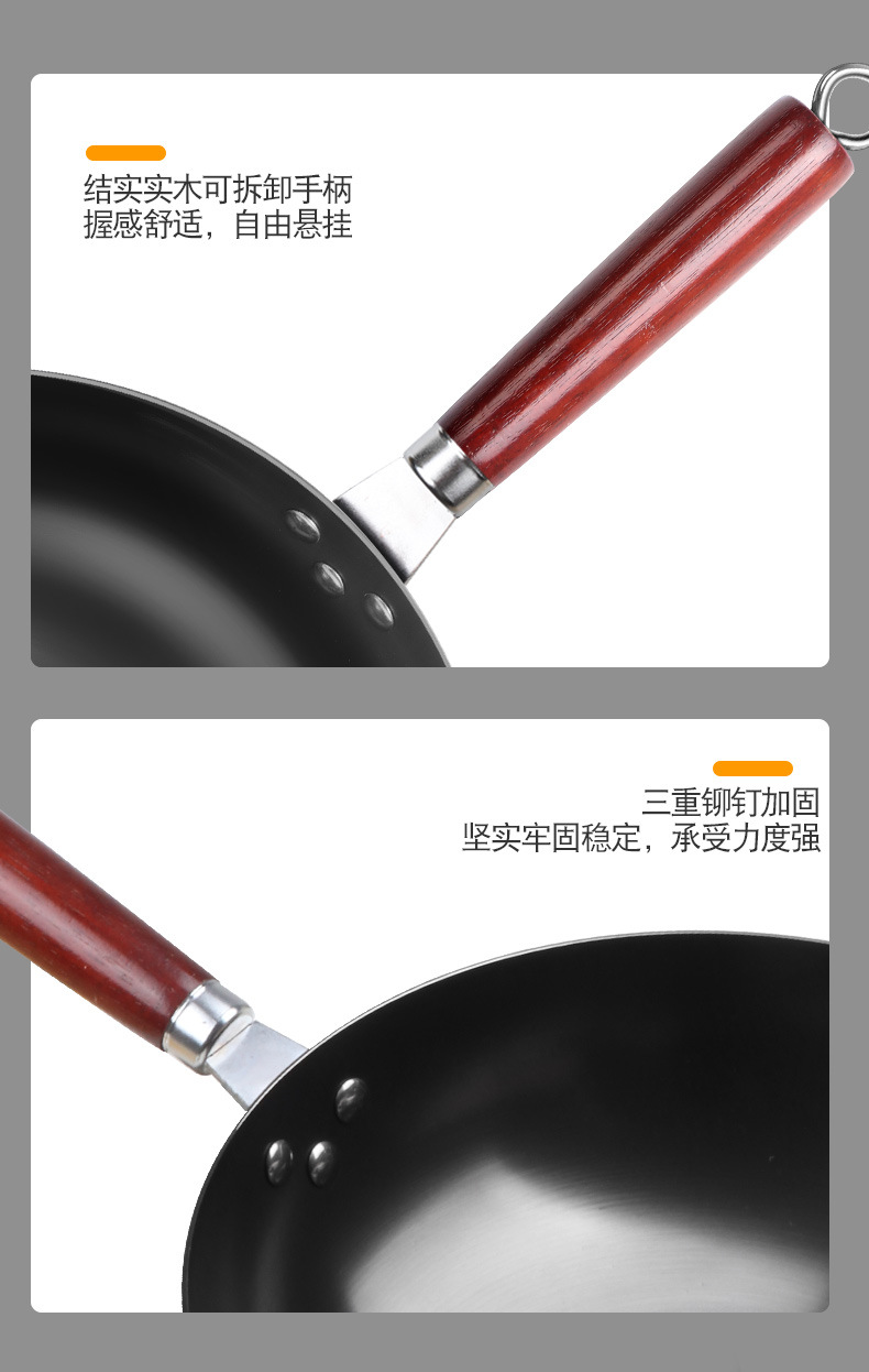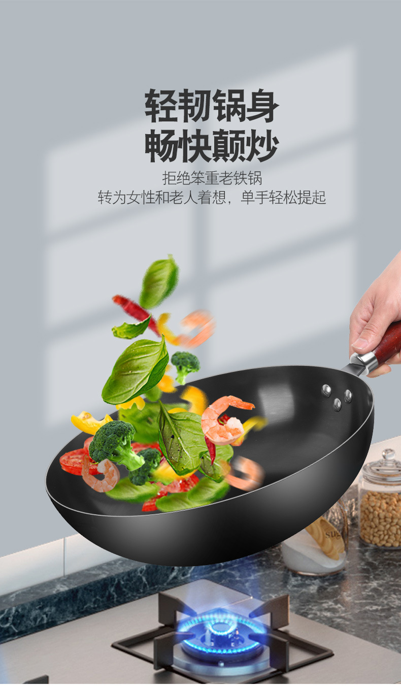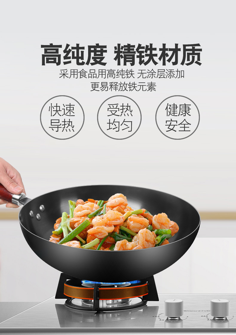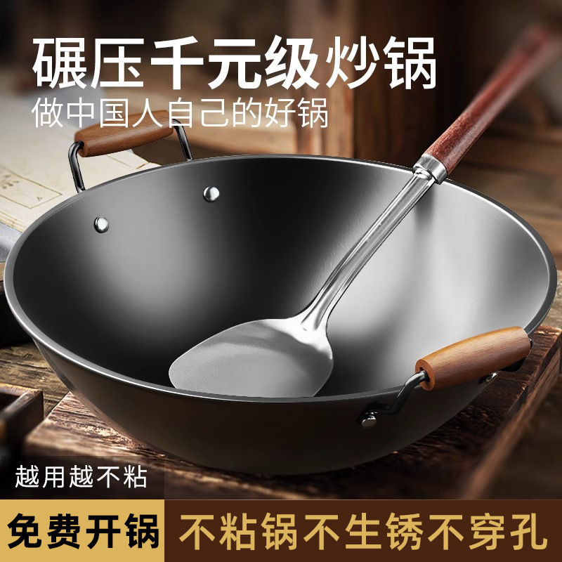 張丘の伝統的な昔ながらの手作り鉄鍋中華鍋家庭用中華鍋ノンスティック鍋公式旗艦店ガスストーブ専用