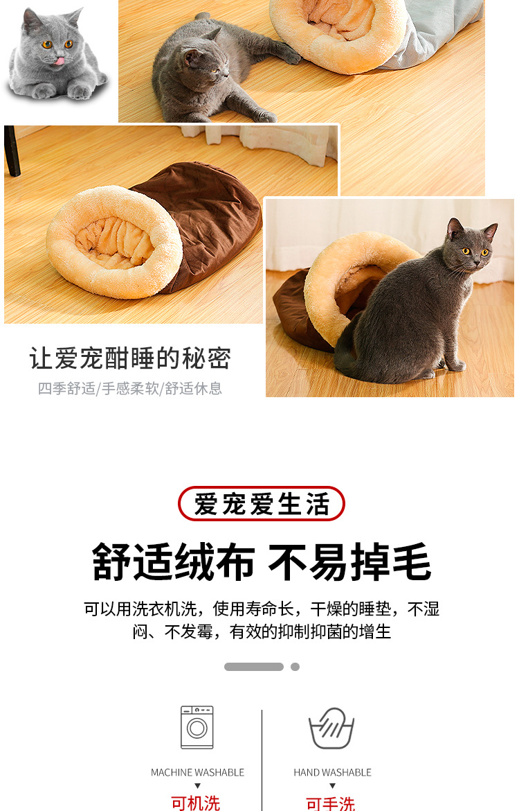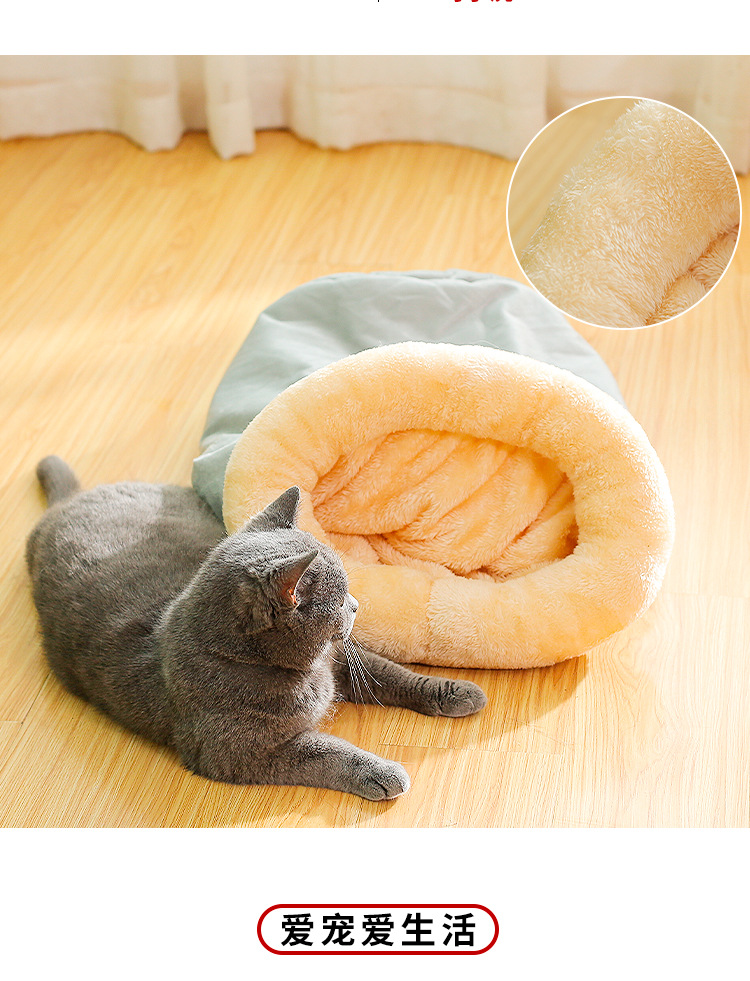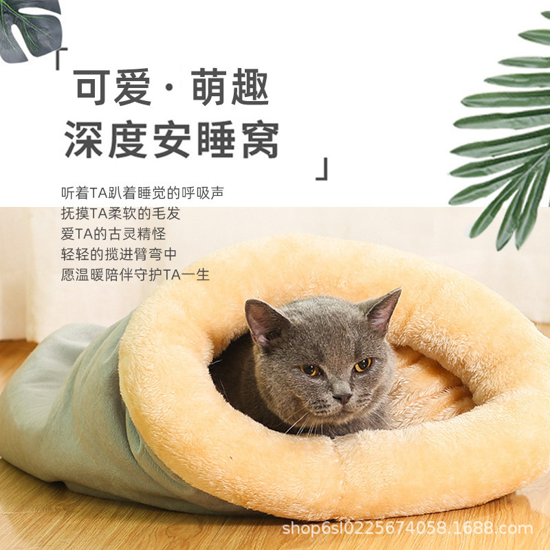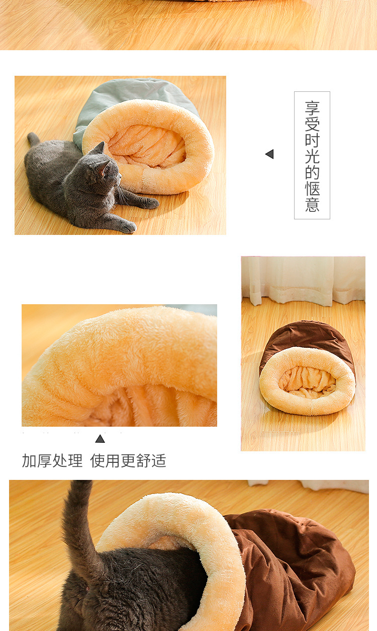 秋冬ペット猫寝袋半閉鎖猫窩保温中小型犬犬窩猫睡眠ベッドペット窩は分解して洗うことができる