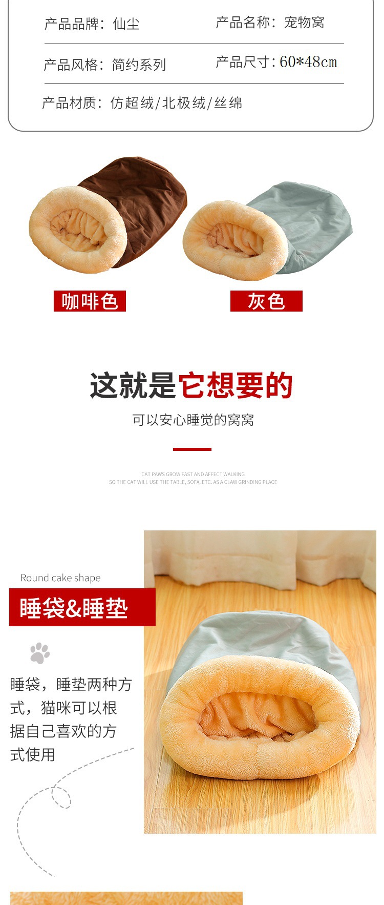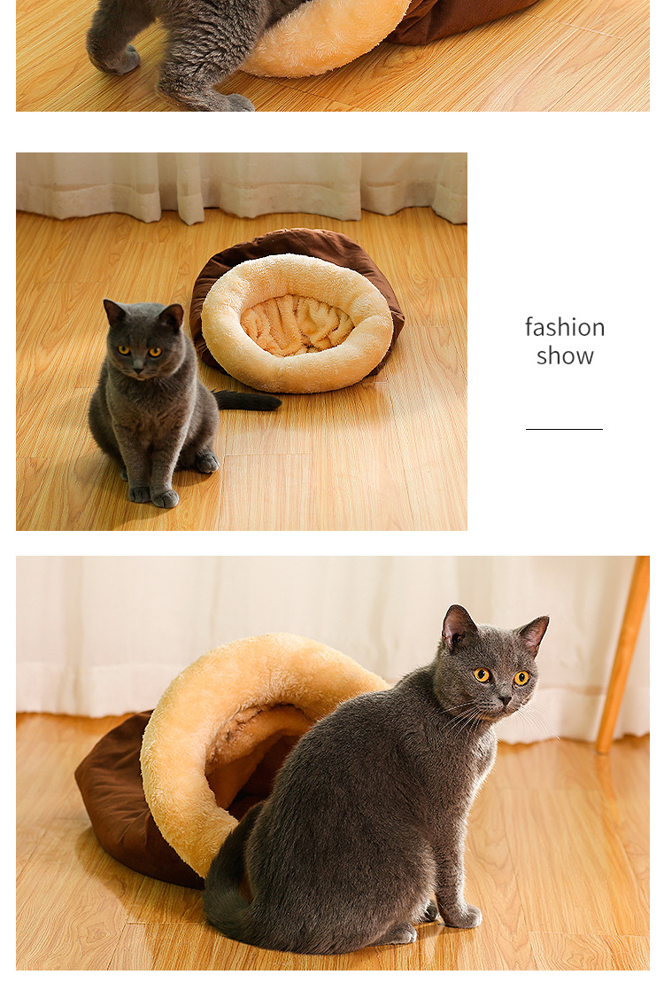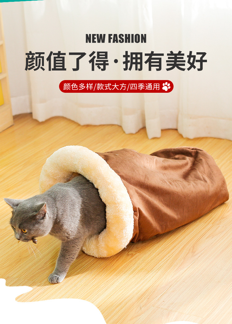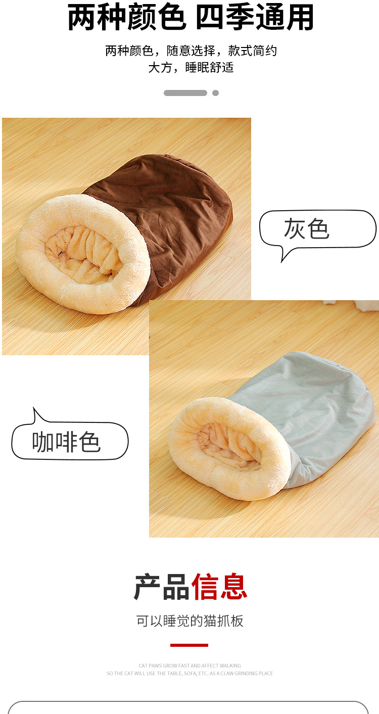 秋冬ペット猫寝袋半閉鎖猫窩保温中小型犬犬窩猫睡眠ベッドペット窩は分解して洗うことができる