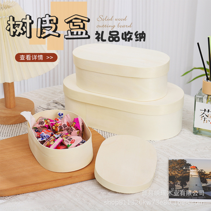 木製の丸いお土産の樹皮箱結婚婚約喜糖菓子装飾箱バスク菓子焙煎箱