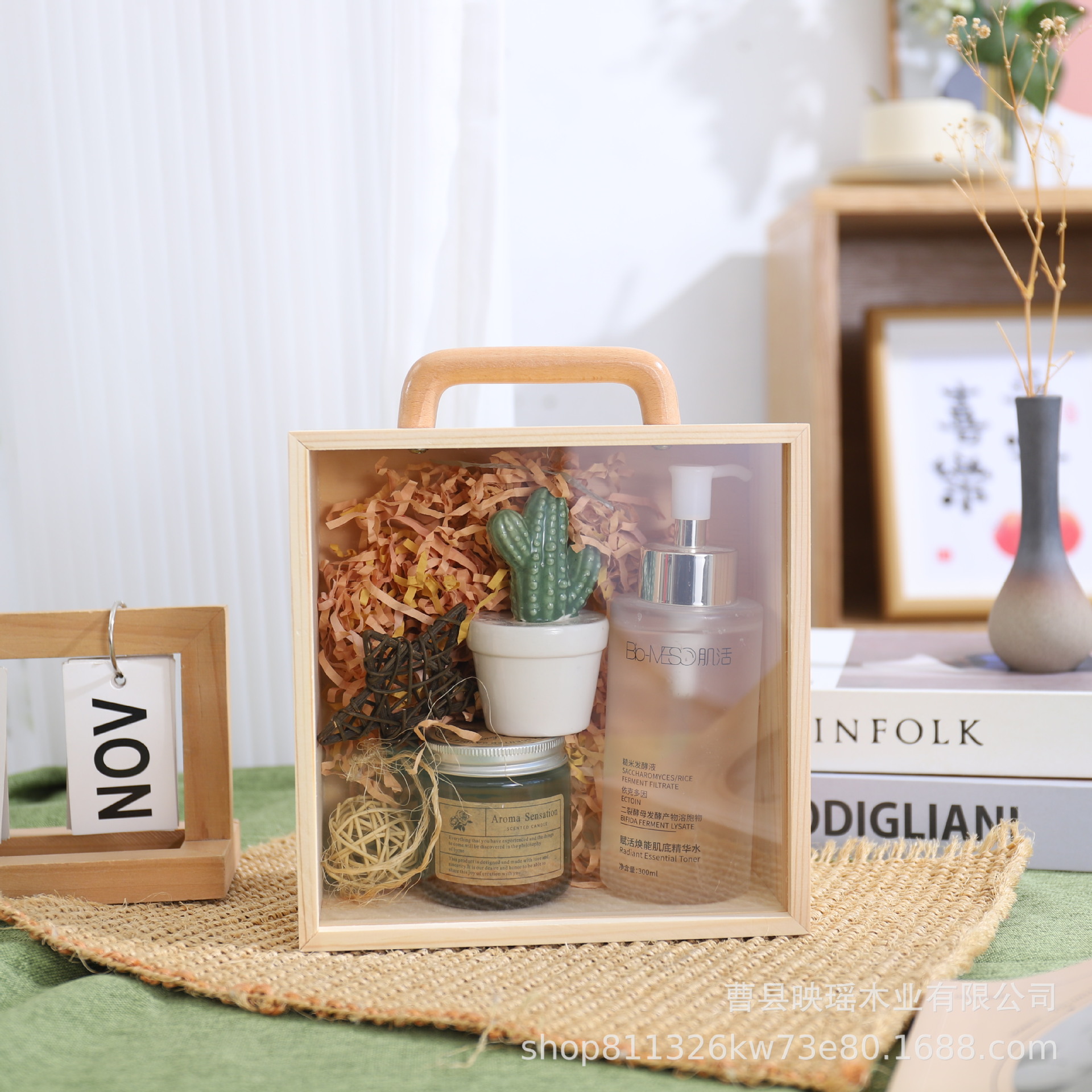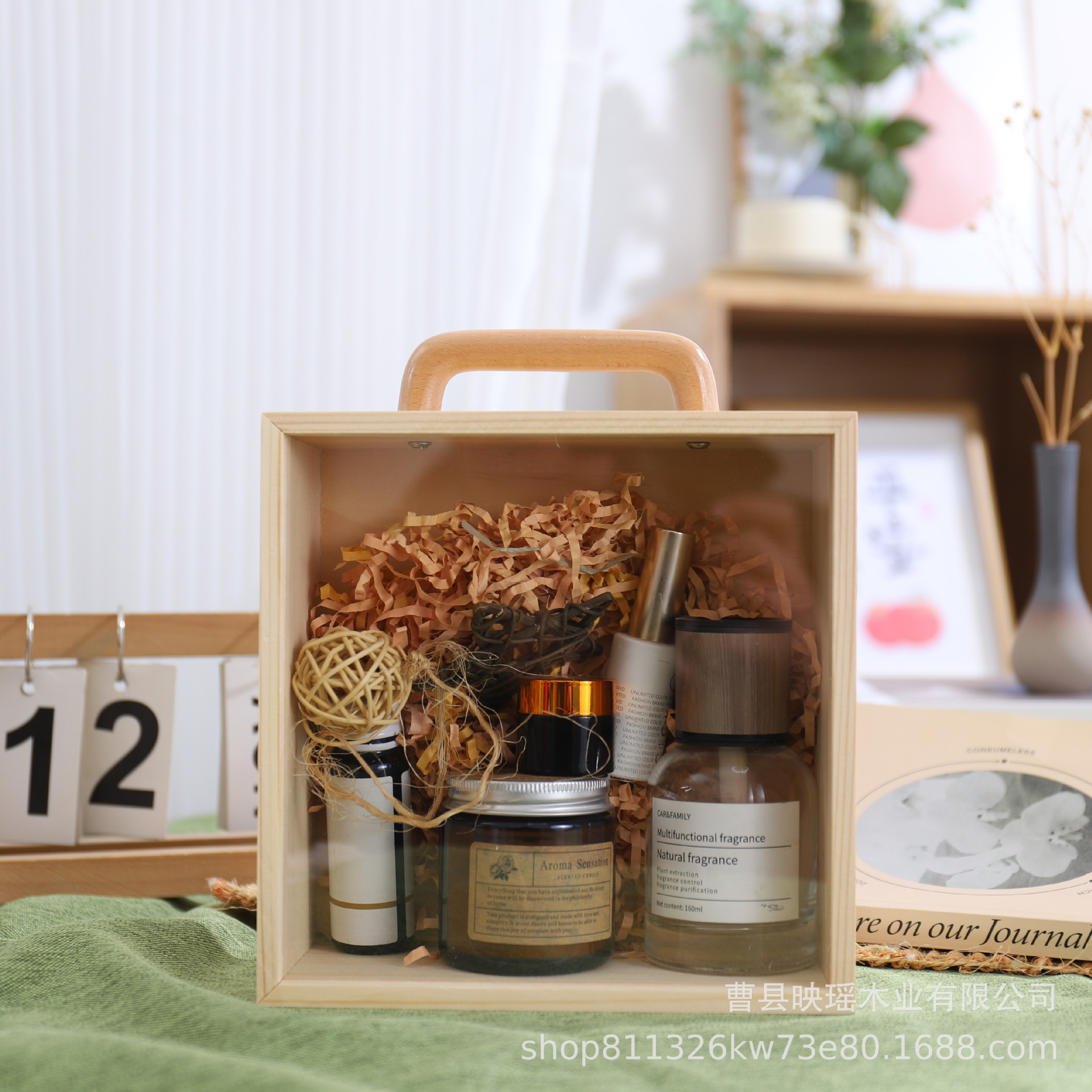 現物の木製プレゼント包装箱は手持ち式で手を引くことができます。