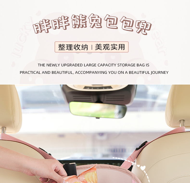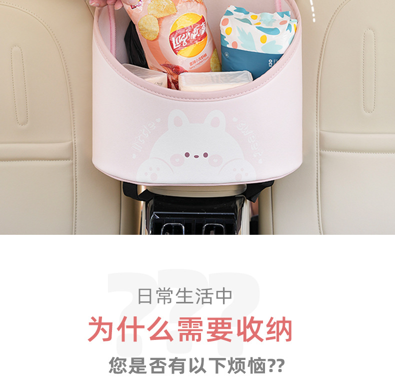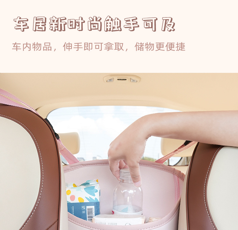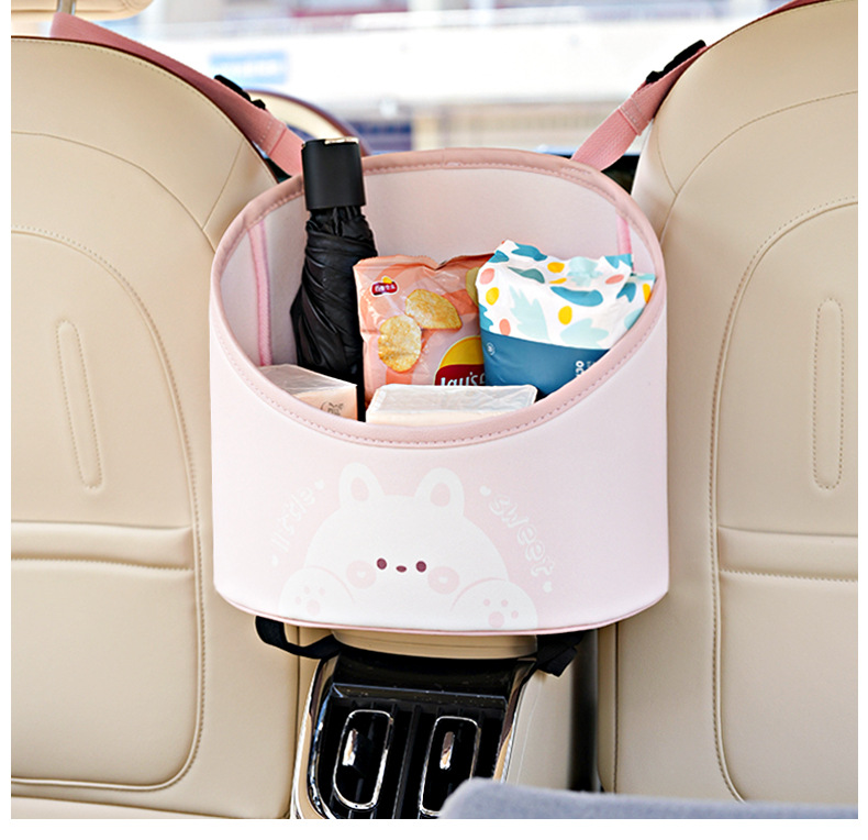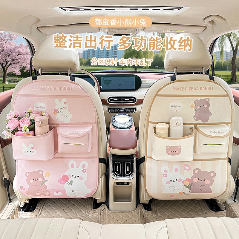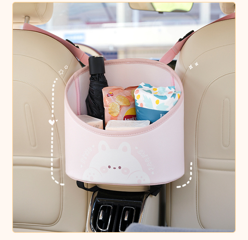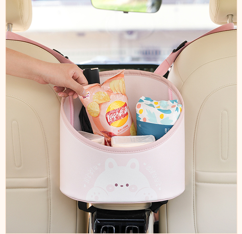 2025新品车载收纳挂袋汽车座椅后背置物袋卡通车载垃圾桶收纳盒