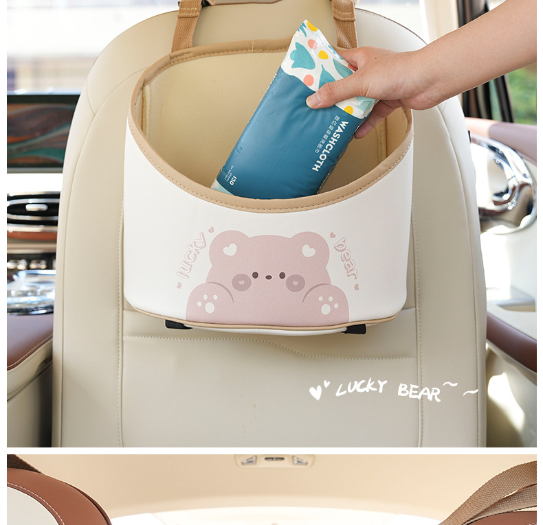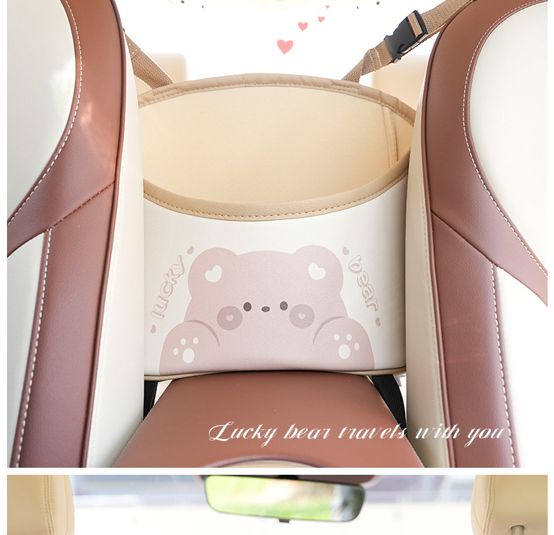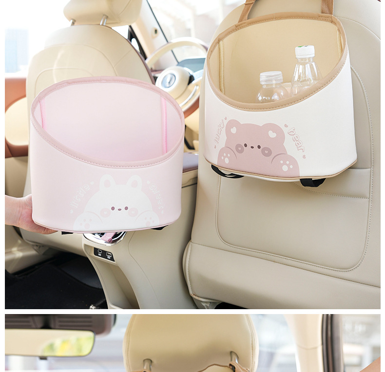 車載ゴミ箱 漫画風チューリップ クマ 背もたれ収納ボックス 可愛い多機能車用収納ボックス
