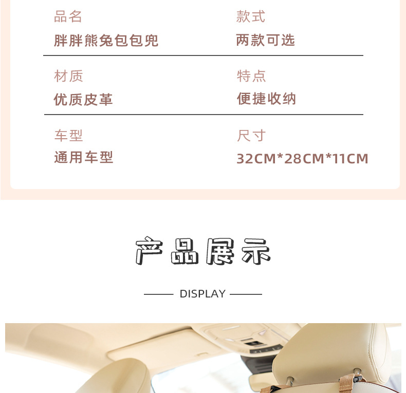 カーシートバック収納袋レザープリントカートゥーン車内置物ポケットクリエイティブ多機能車載収納