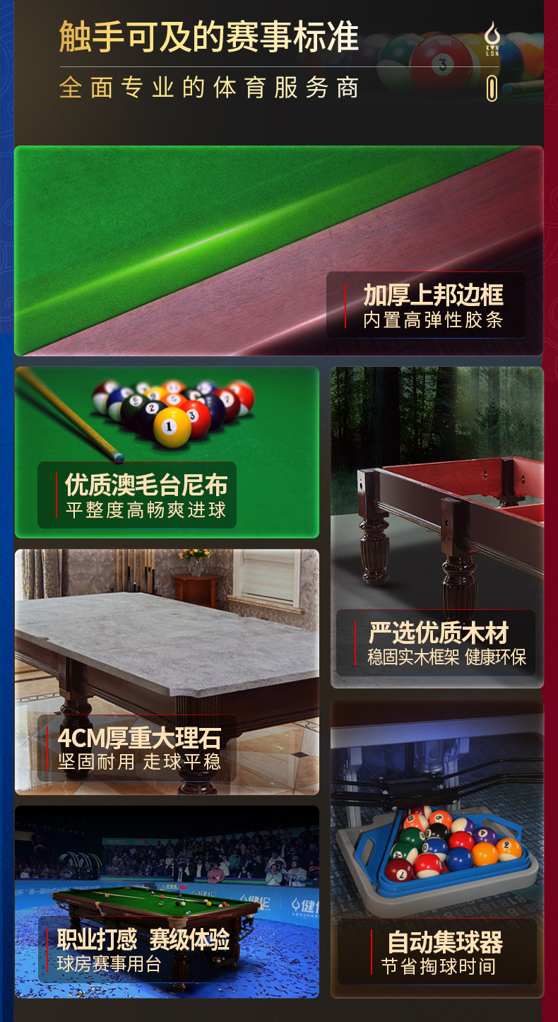 毒牙台球桌黑八标准型球房商用家用斯诺克批发球厅钢库中式比赛