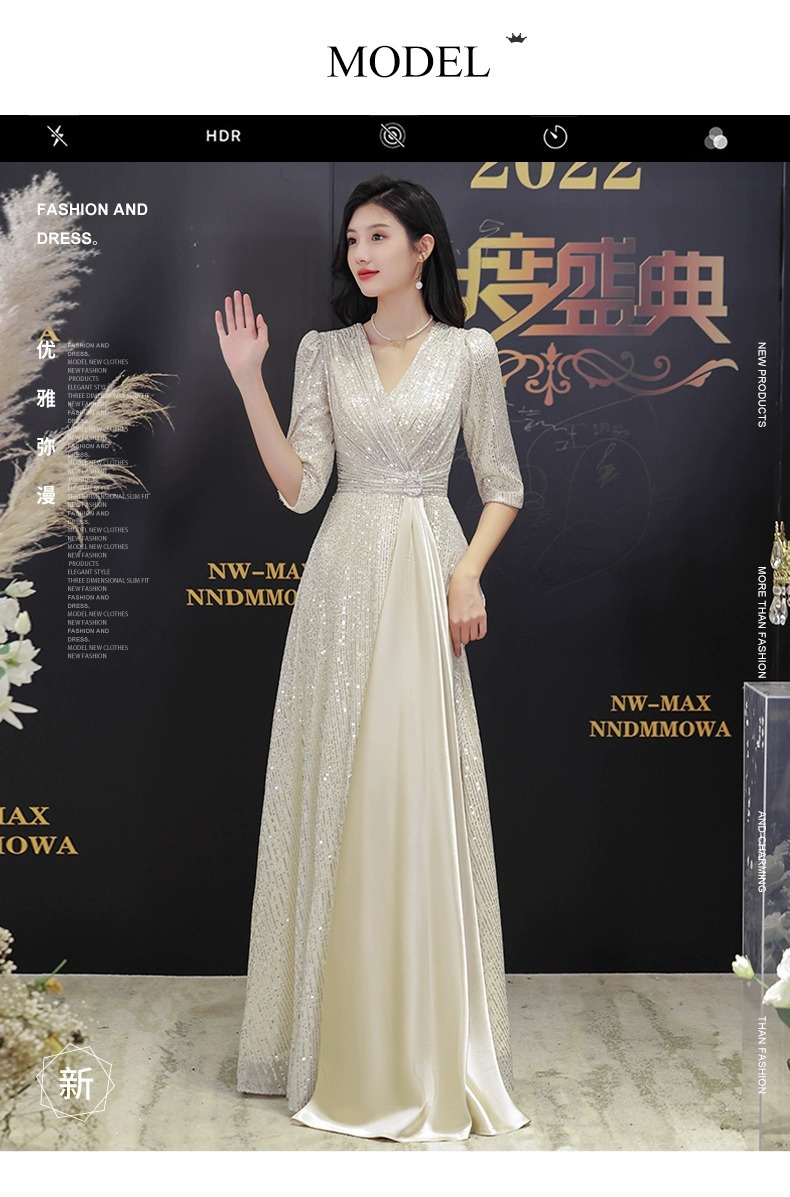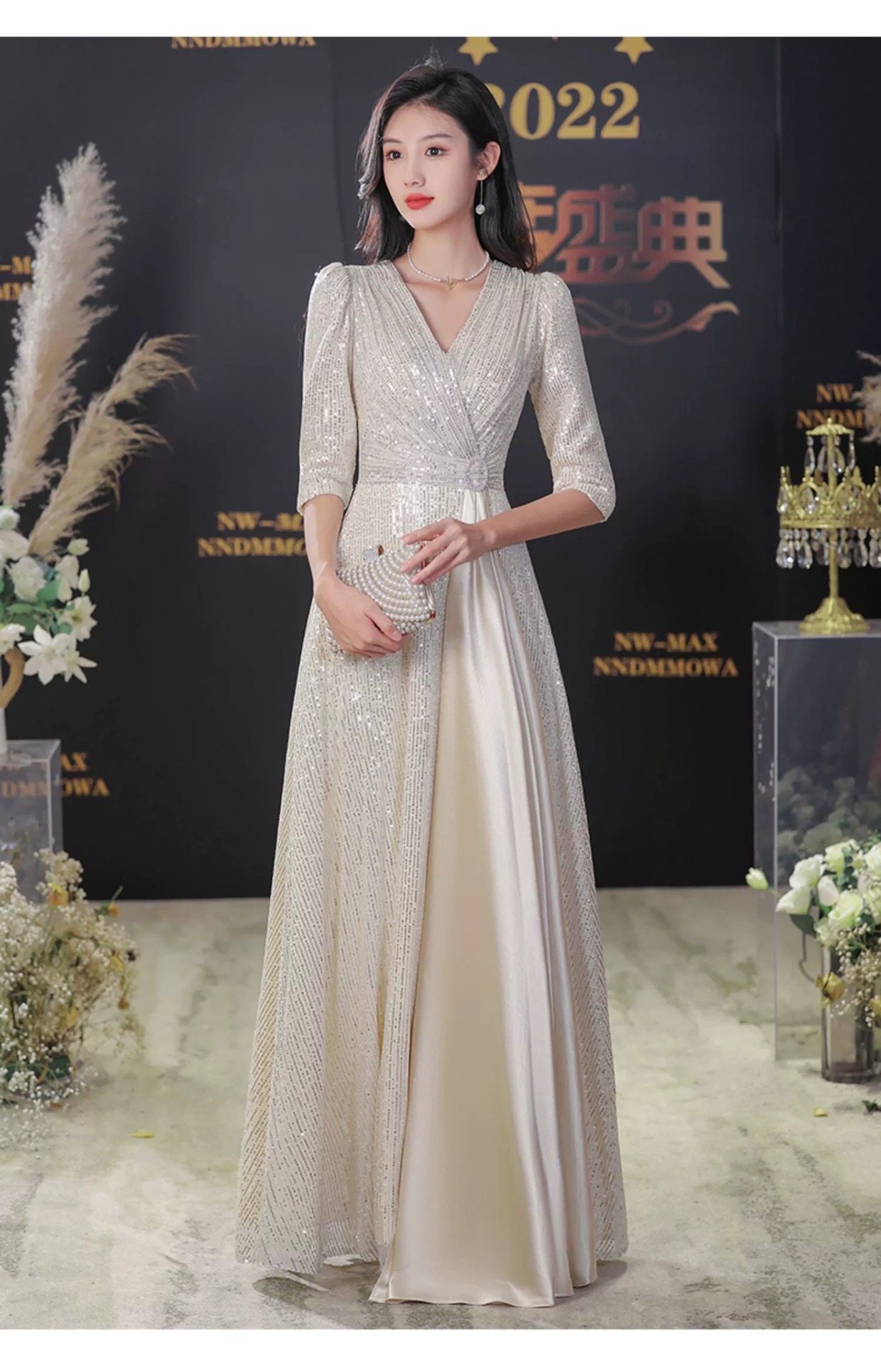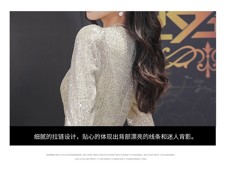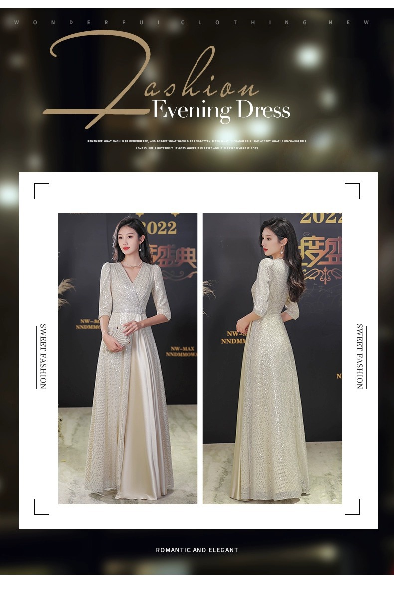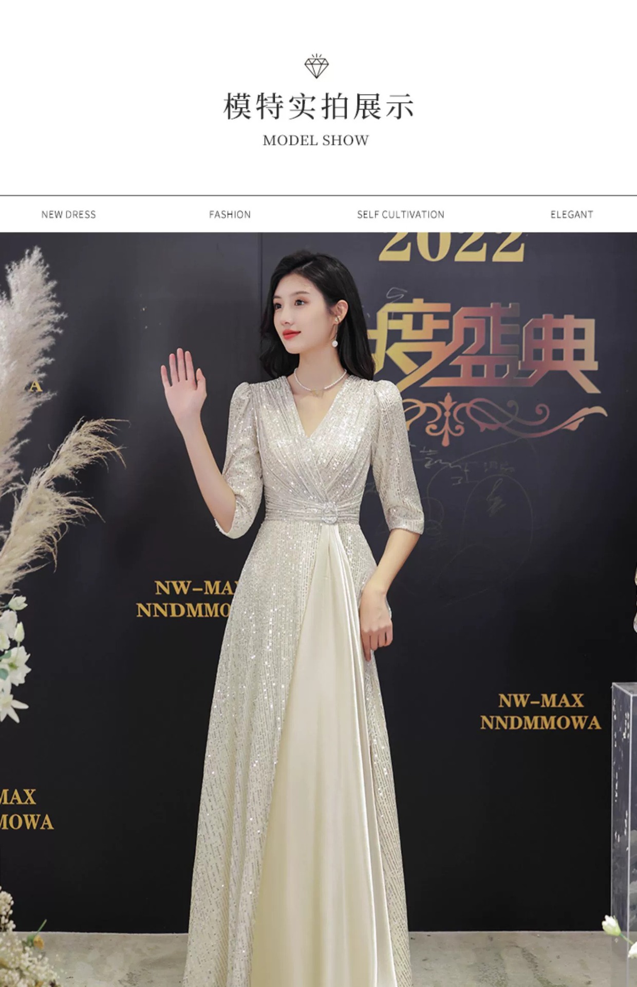 スパンコール付きイブニングドレス レディース 2025年新作 深Vネック 宴会 エレガント 個性的 年次総会 司会者 長袖イブニングドレス 卸売