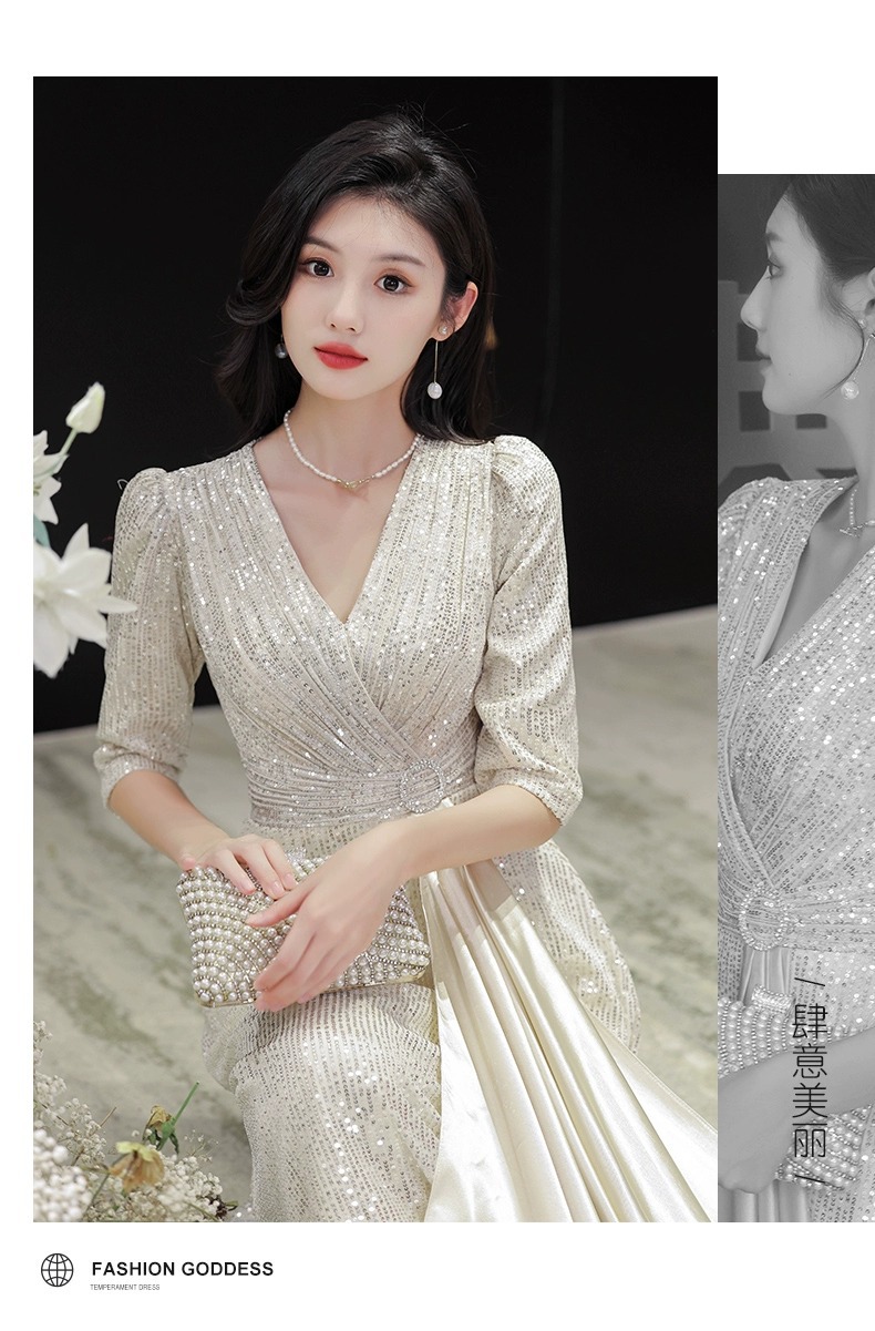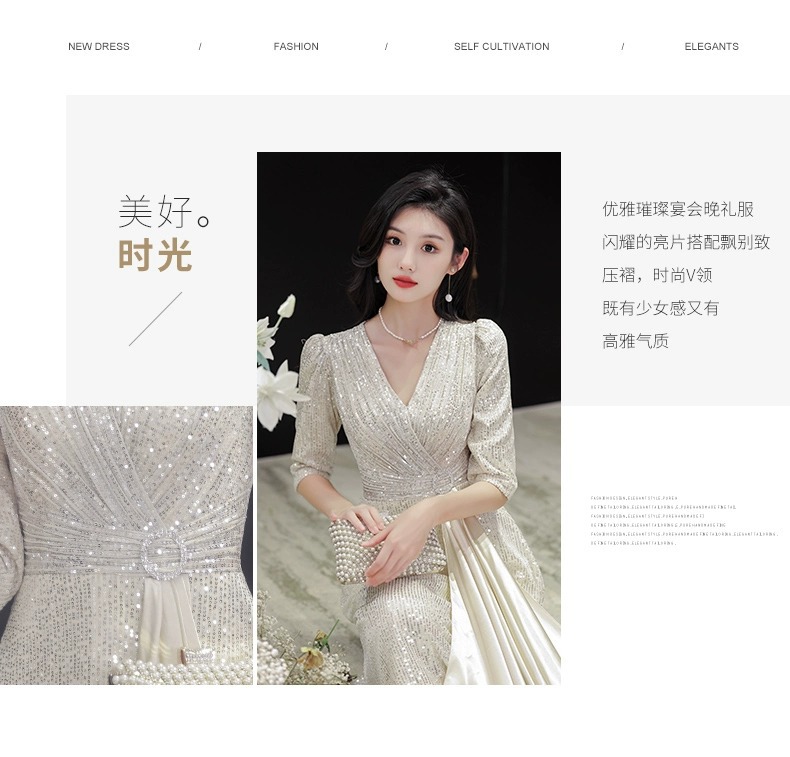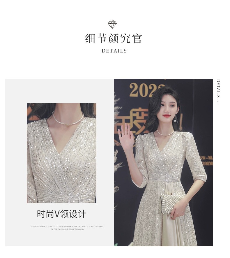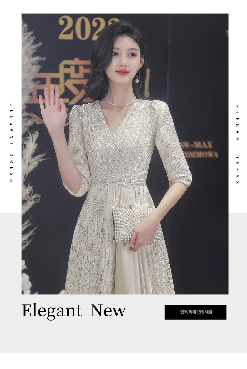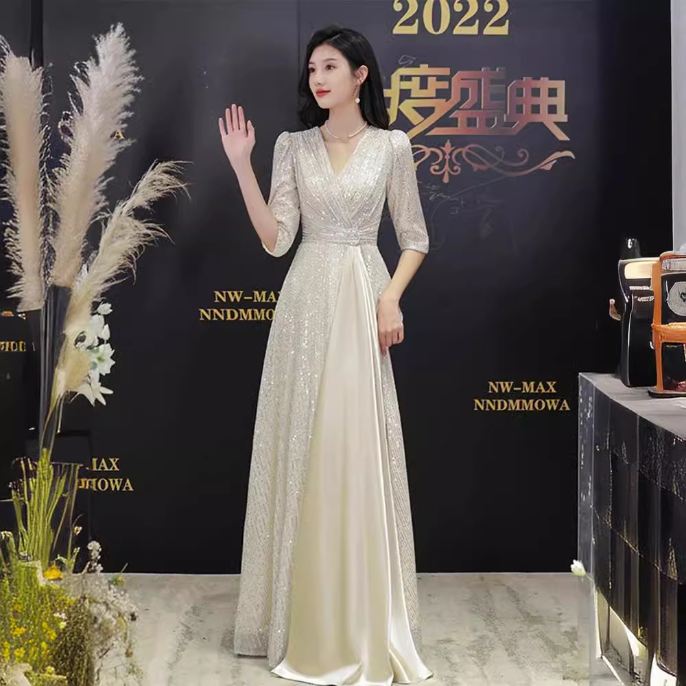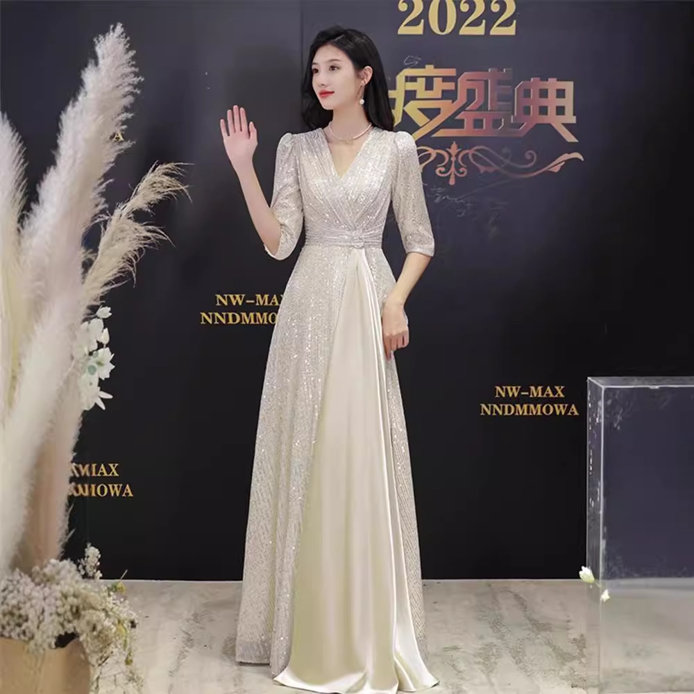 女性のためのイブニングドレス 2025 春と秋の新作宴会気質セレブスパンコール社交家ホスト威厳のあるエレガントなドレス