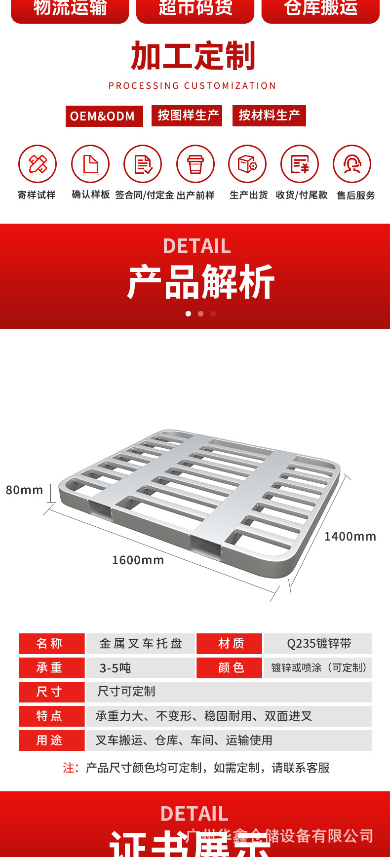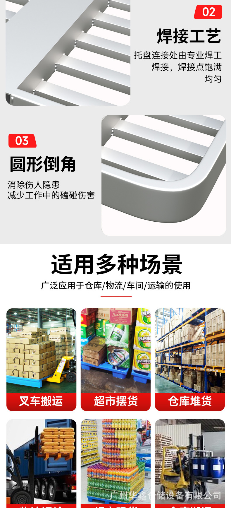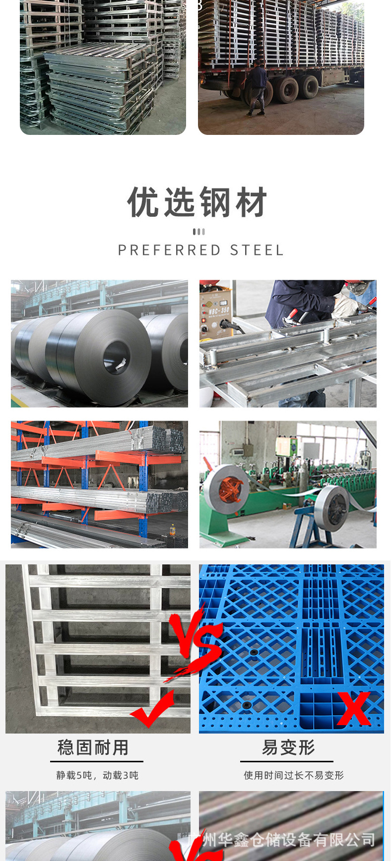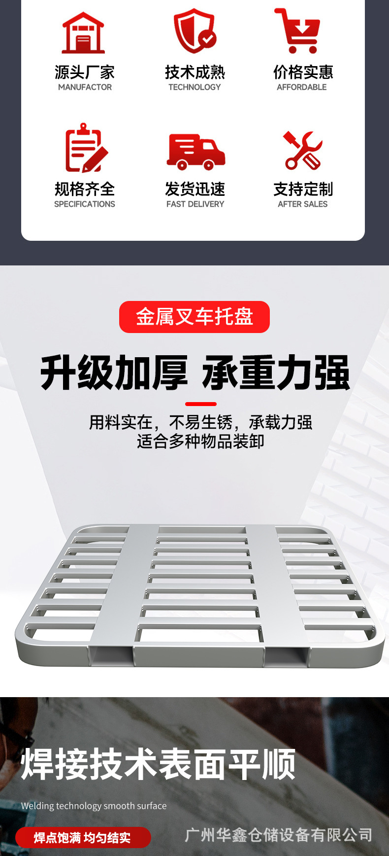 華鑫製鋼製パレット倉庫、両面/四面フォークリフト対応鉄製金属パレット、倉庫板、棚、物流倉庫