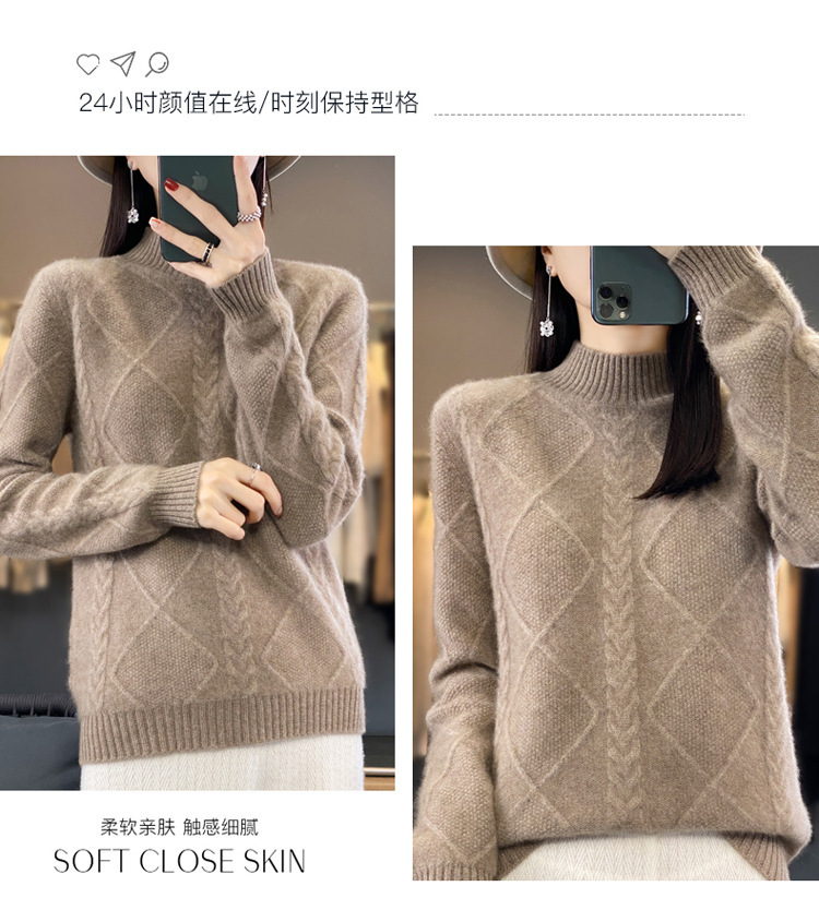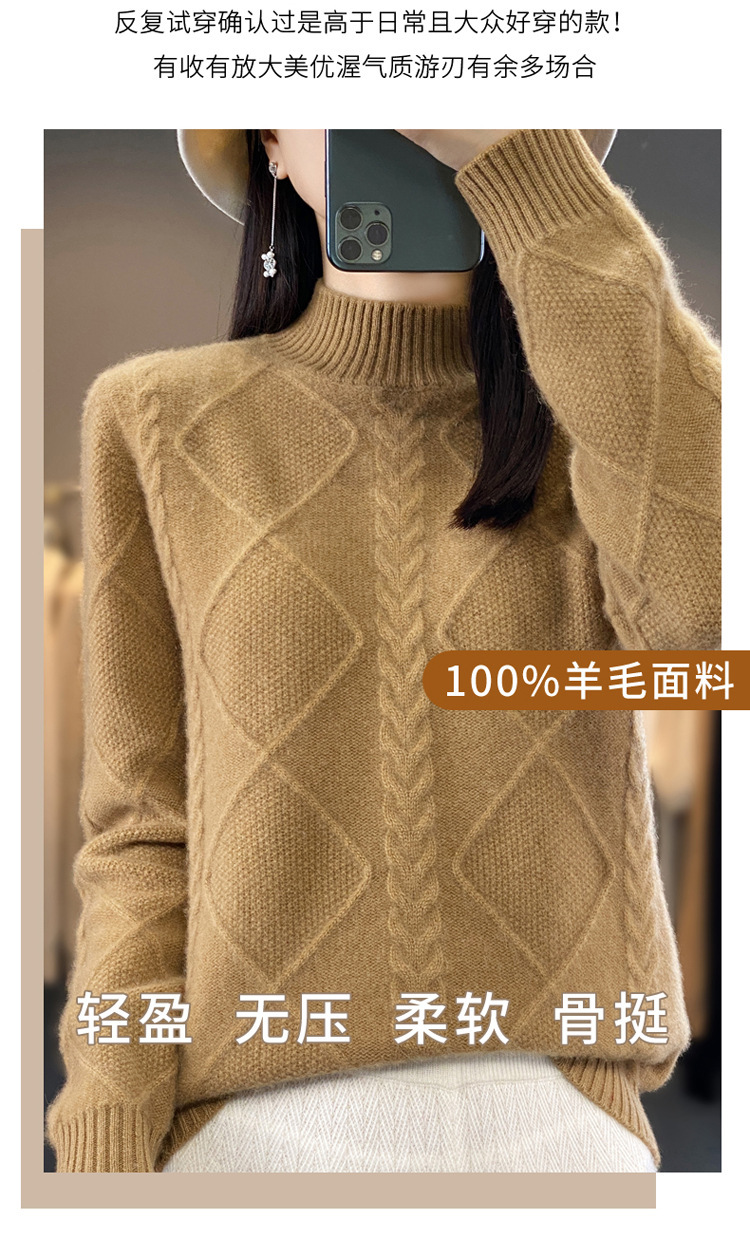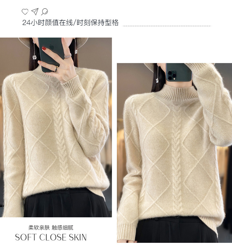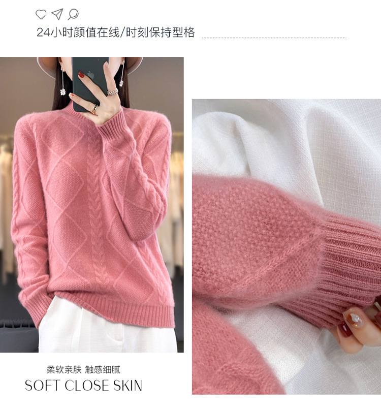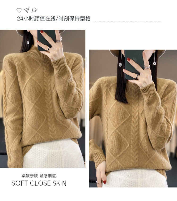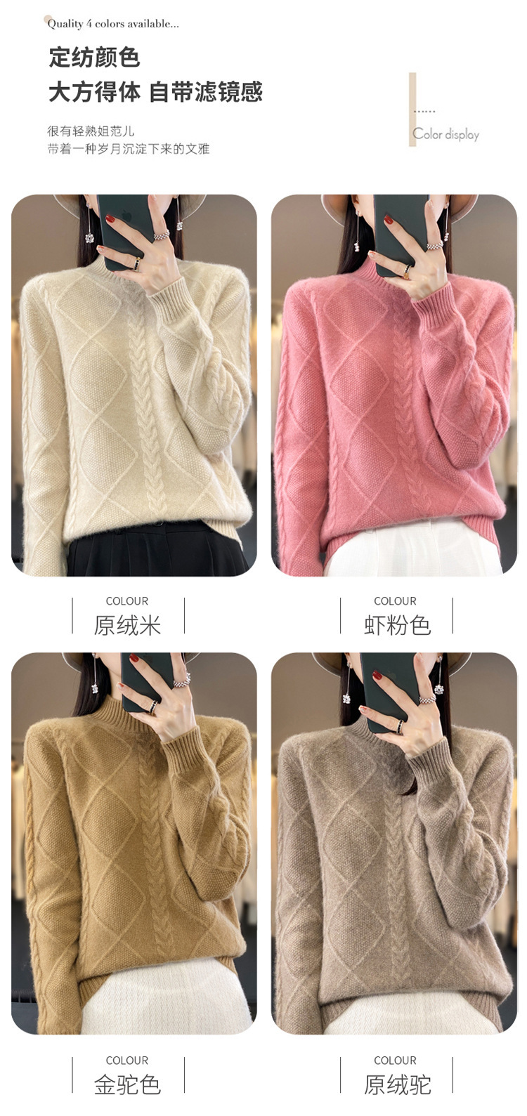 卸売 2024 秋と冬の新しいウール女性ハーフハイカラー底シャツセーター無地ニットウェア婦人服プラスサイズ