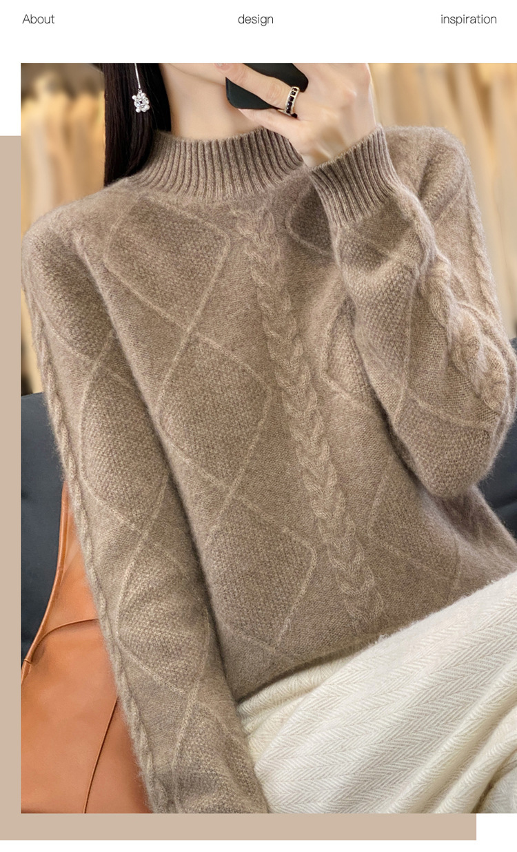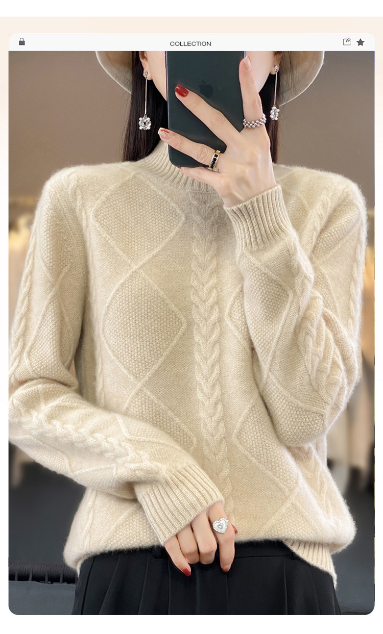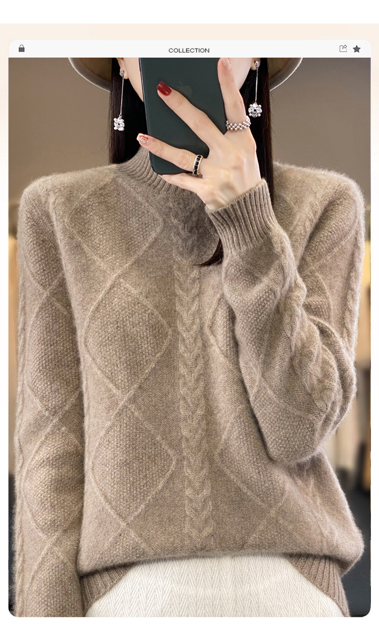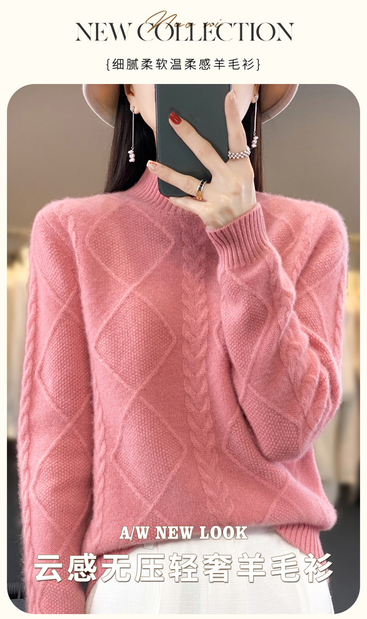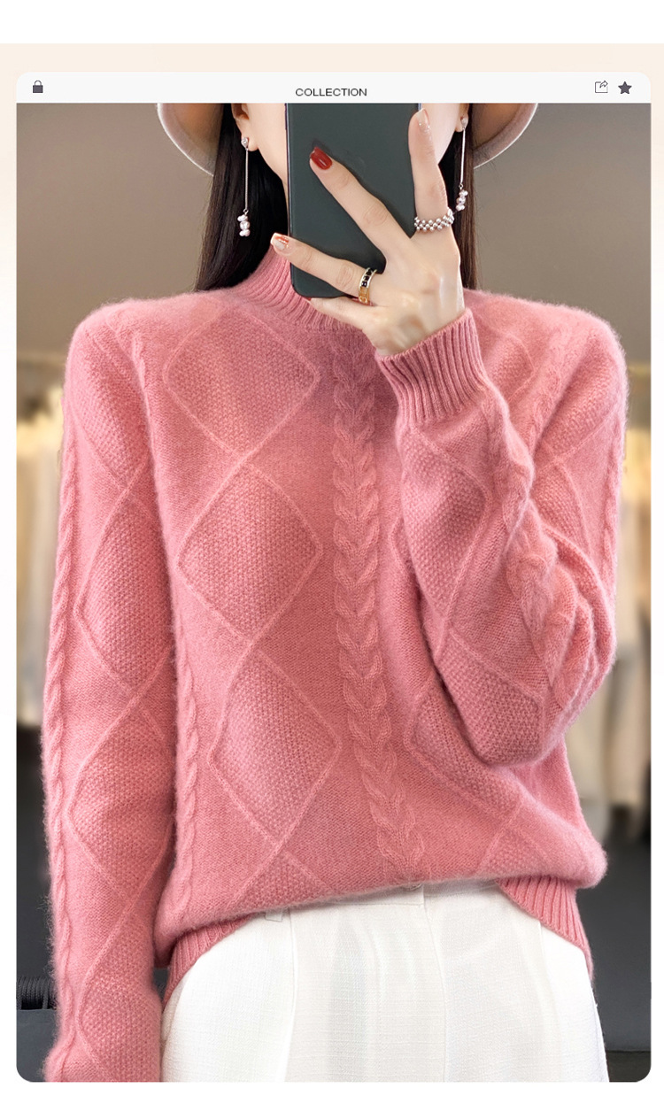 卸売 2024 秋と冬の新しいウール女性ハーフハイカラー底シャツセーター無地ニットウェア婦人服プラスサイズ