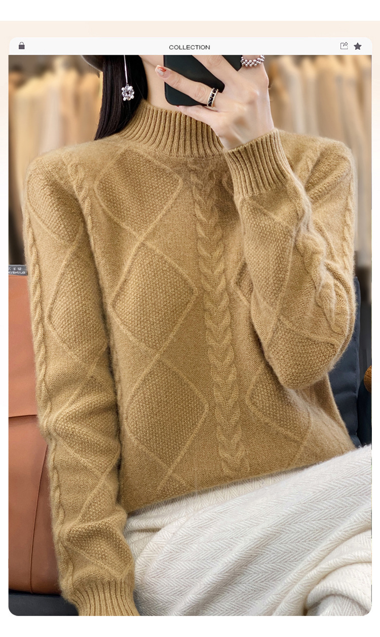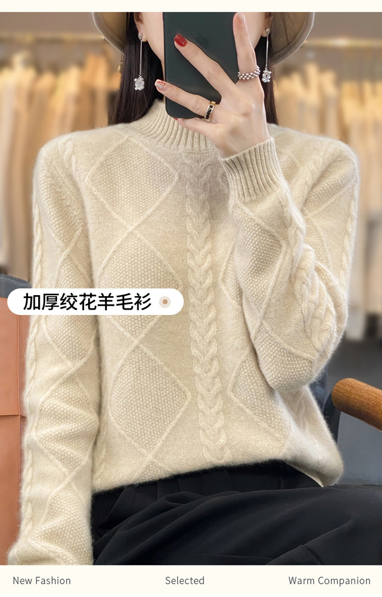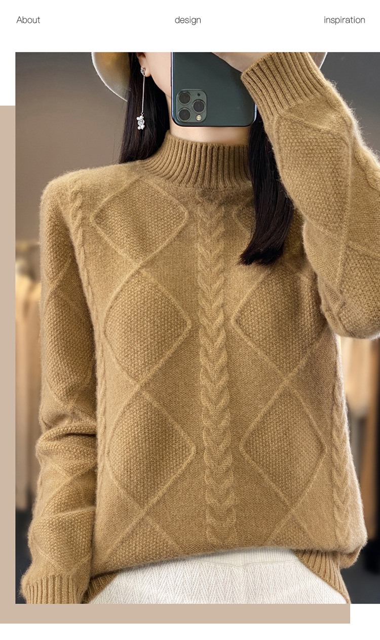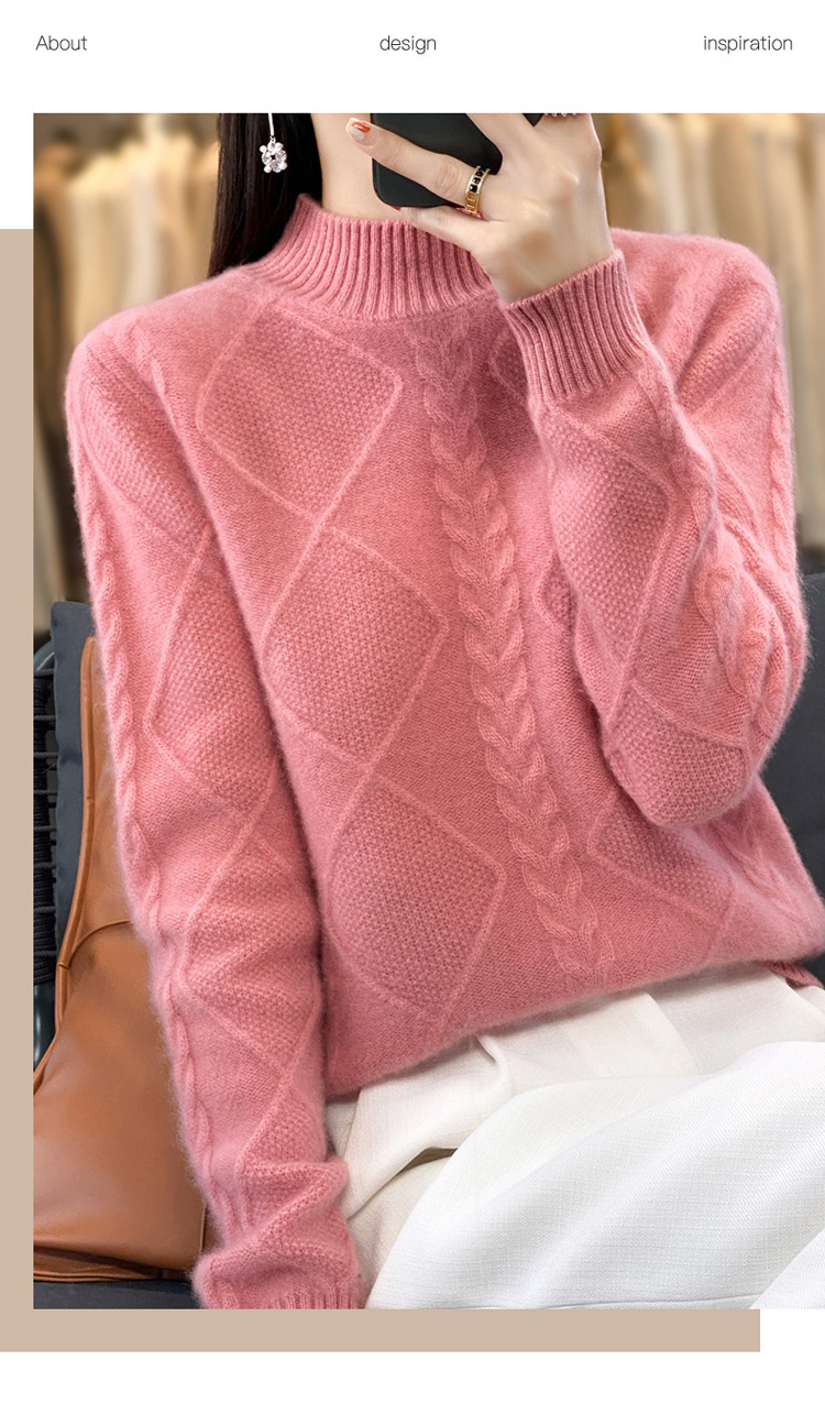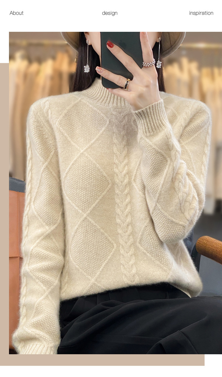 卸売 2024 秋と冬の新しいウール女性ハーフハイカラー底シャツセーター無地ニットウェア婦人服プラスサイズ