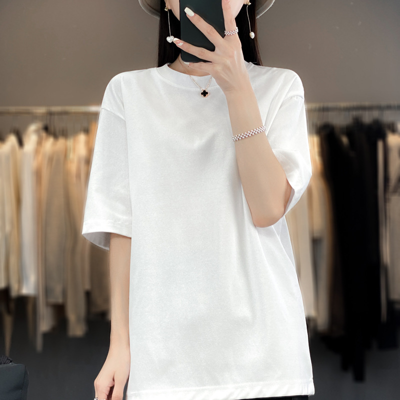 半袖tシャツ100純綿白女2024夏の新型韓国版の中で、お尻を隠してゆったりした綿tシャツ