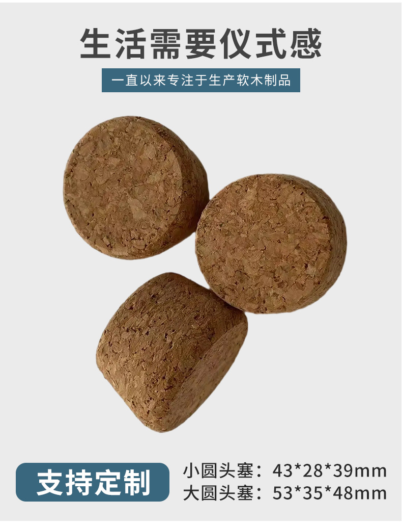工場直売コルク栓円錐ガラス瓶泡酒壇封口栓丸み角大口径密封栓