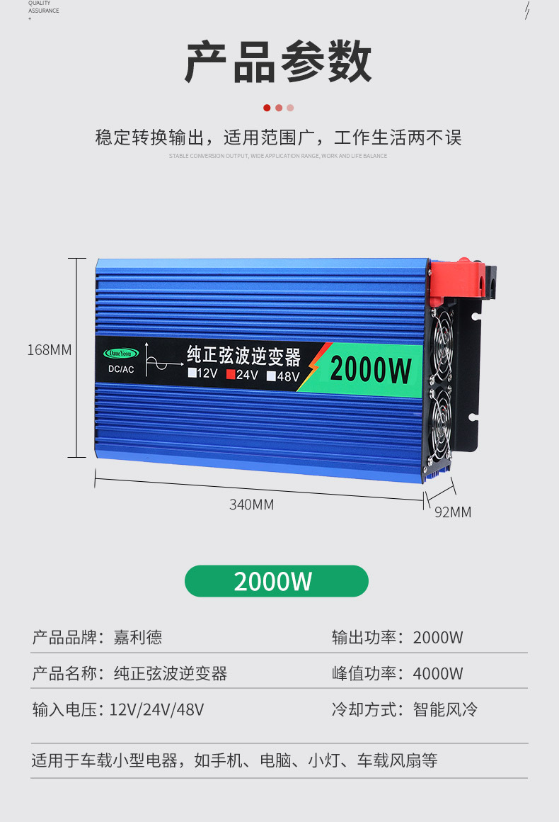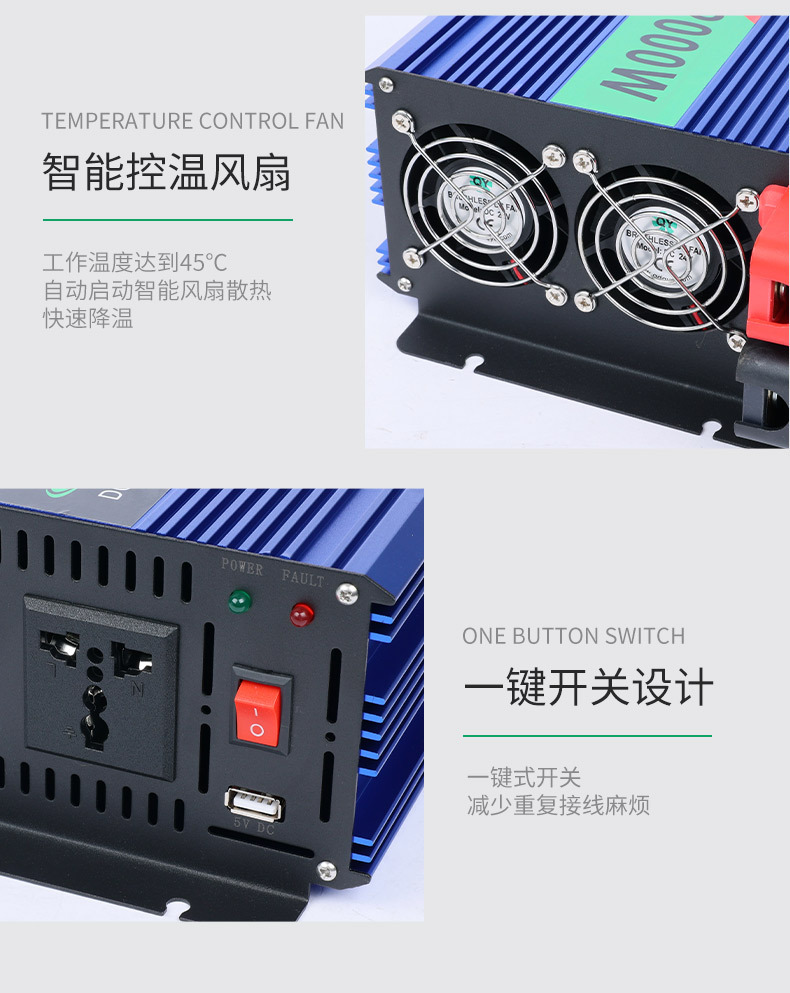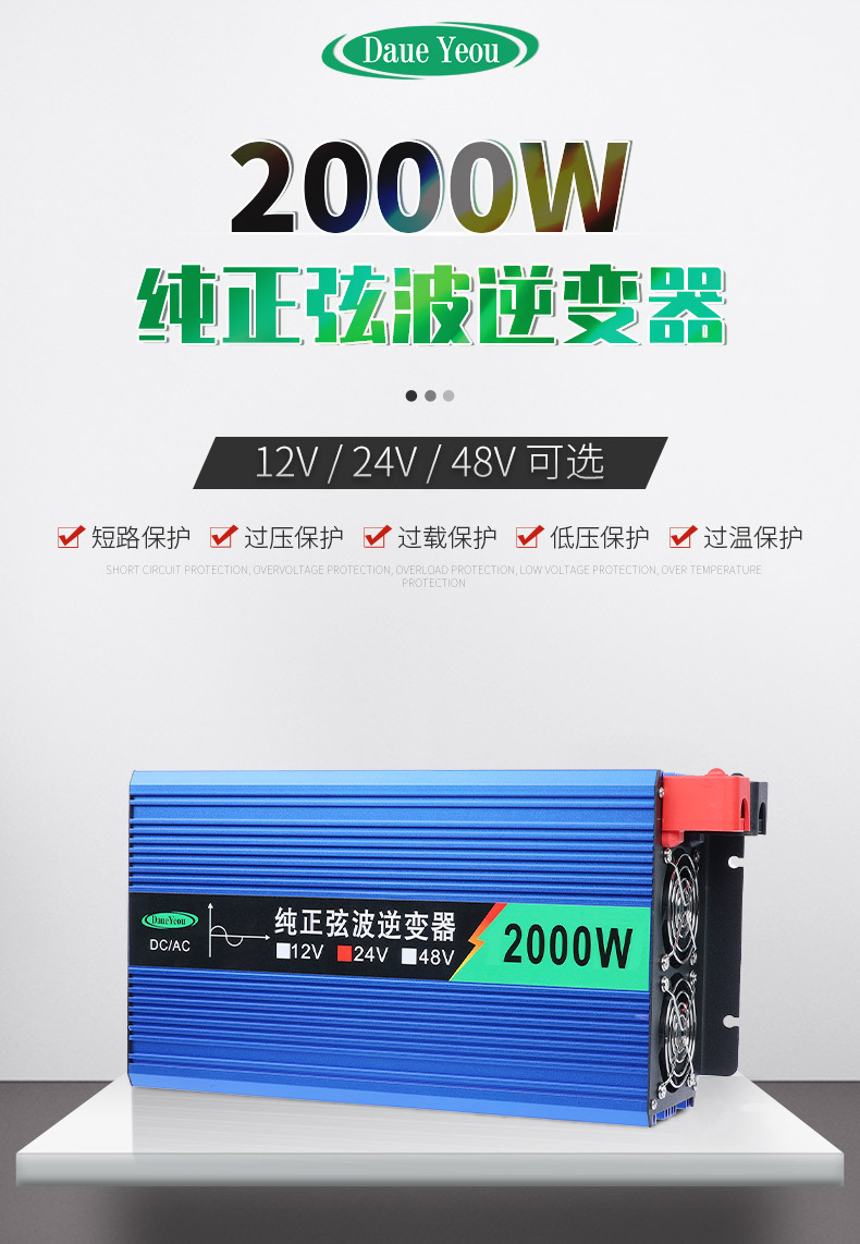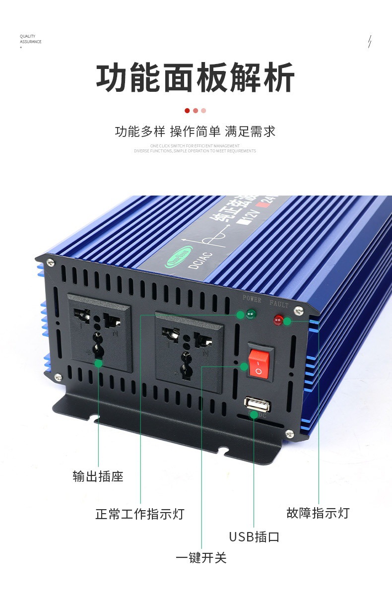 纯正弦波逆变器车载家用足功率12v24v48V60V72V转220V转换器