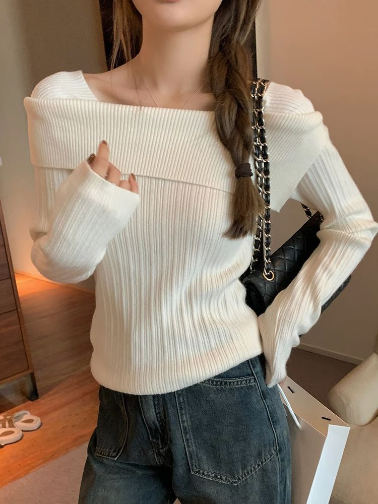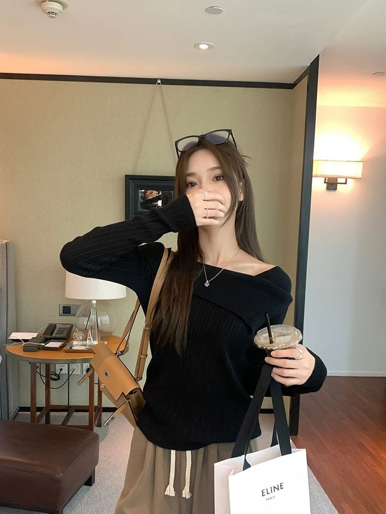 純欲風一字肩ニット女性秋冬高級感インナープルオーバー