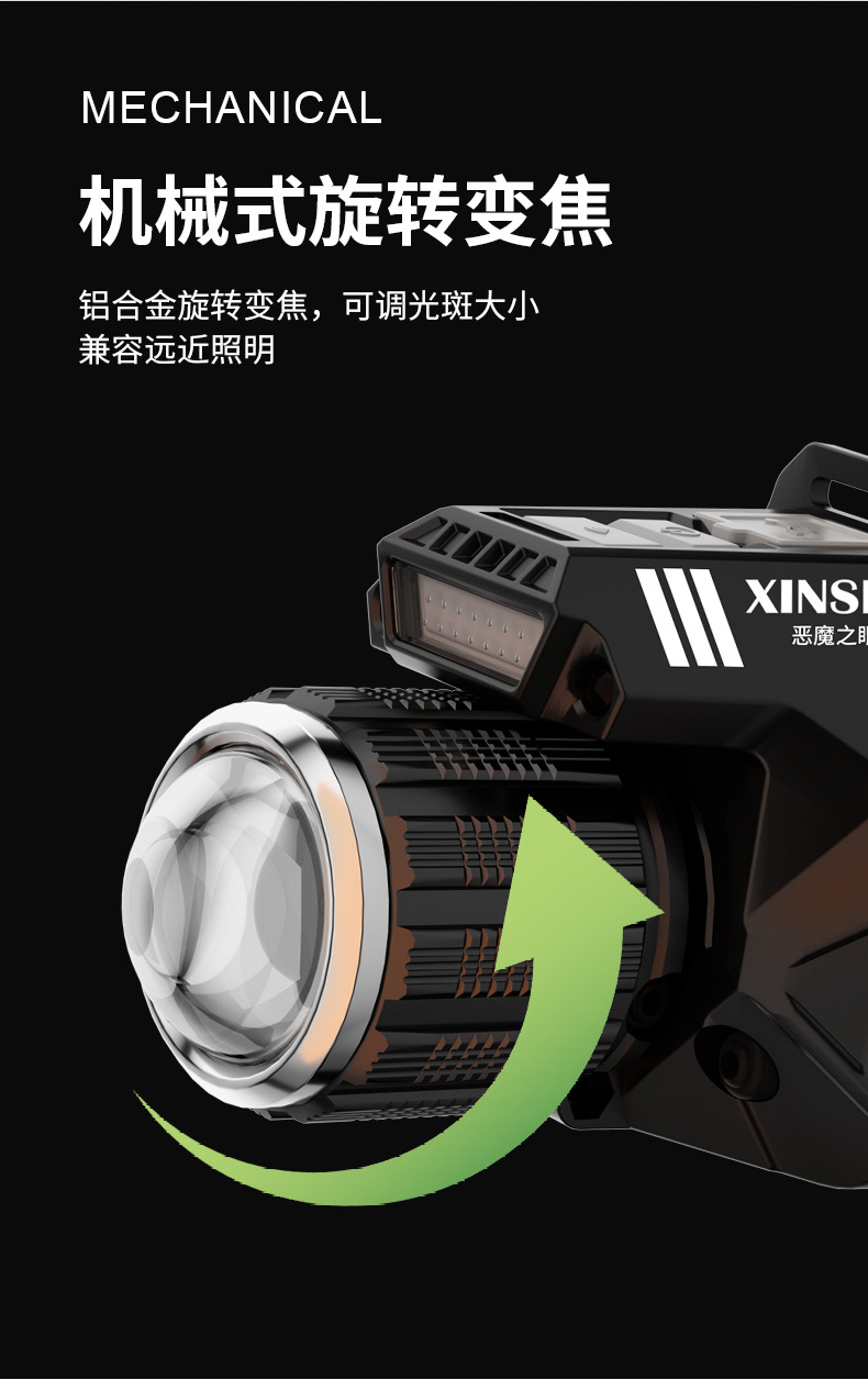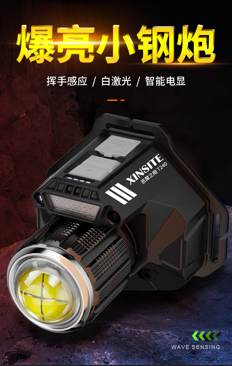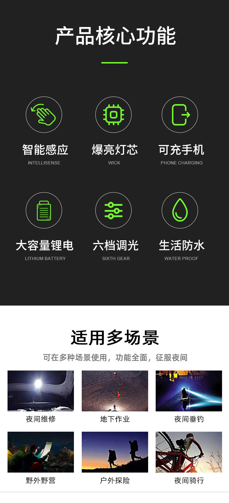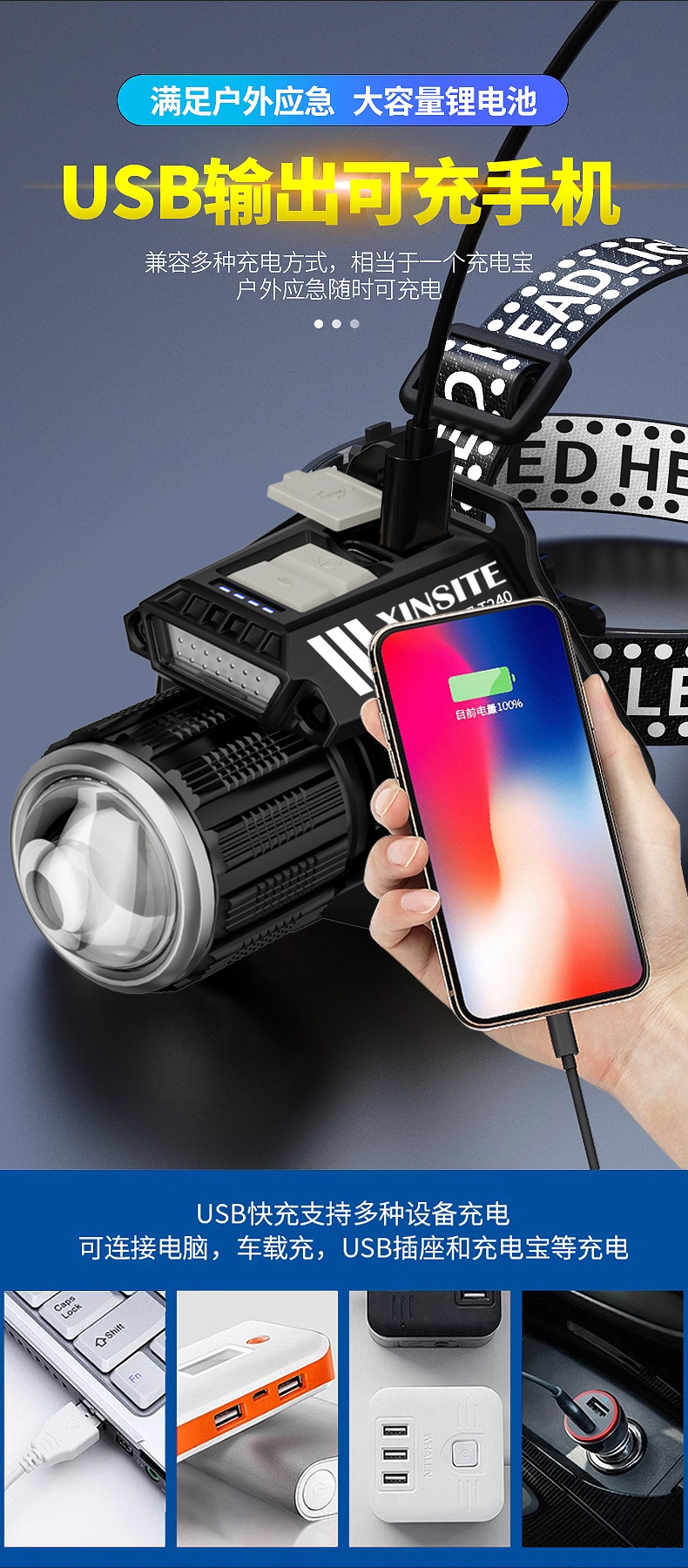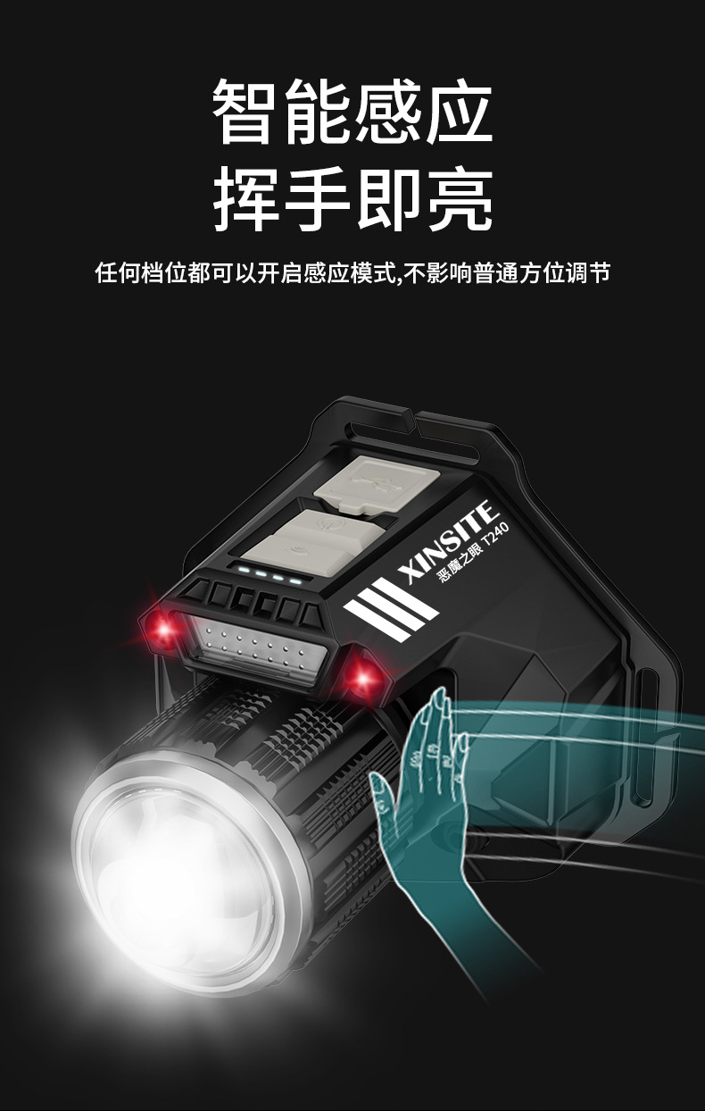 新型led強光感応ヘッドライト屋外多機能超亮釣りランプ
