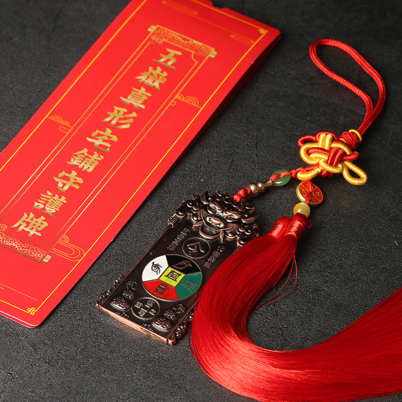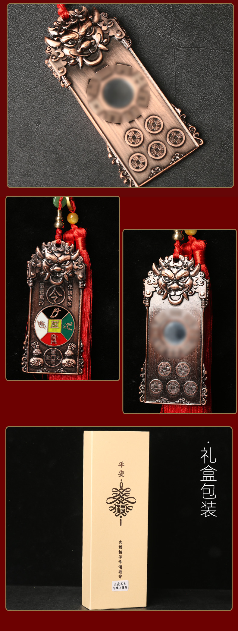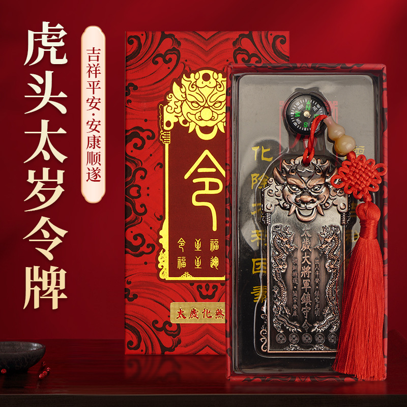 虎头五岳镇形守护牌礼品盒装合横梁化Sa镇宅风水虎头将军令牌挂件