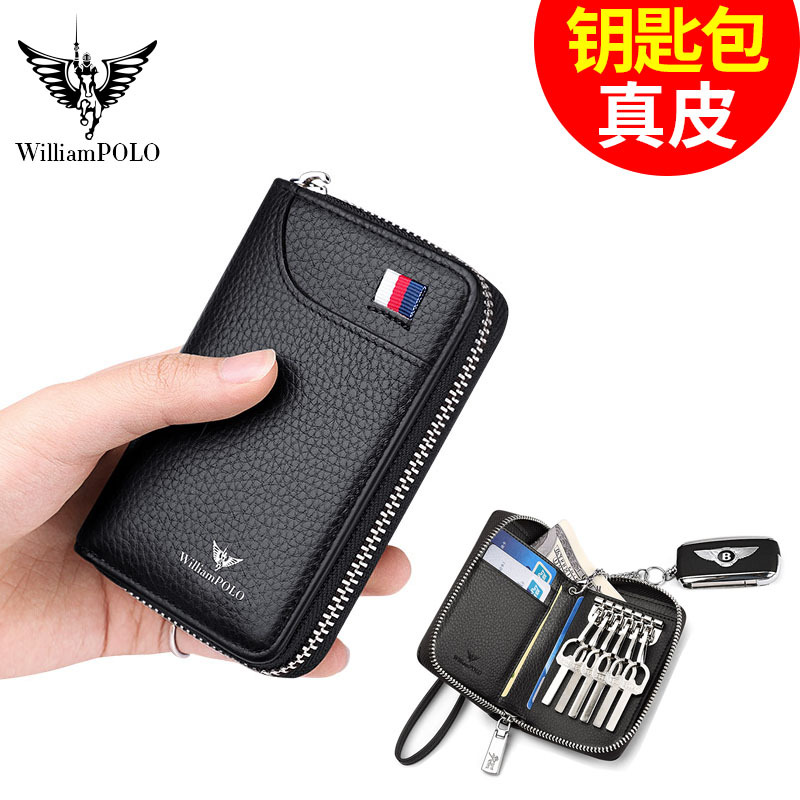 英皇ポール真皮キーバッグ男性多機能汎用キーバッグ大容量ファスナー自動車キー小銭入れ