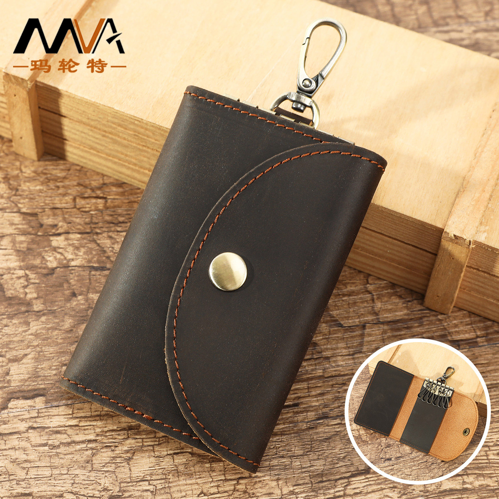 玛轮特真皮钥匙扣多功能疯马皮卡包头层牛皮卡包银行卡证件钥匙包