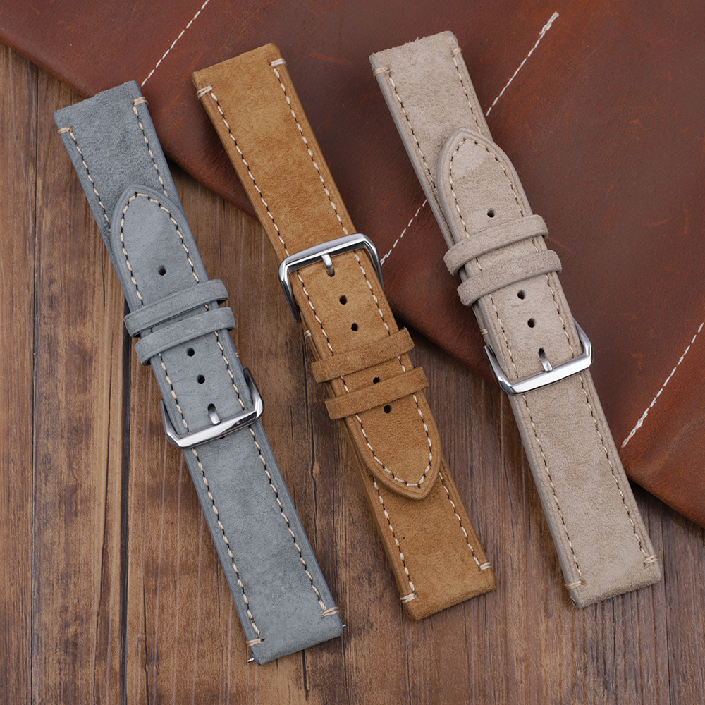 工場直送 ベルベットレザー 本革スエード牛革時計バンド プレス縫い糸入り おしゃれな革時計ベルト 男女兼用