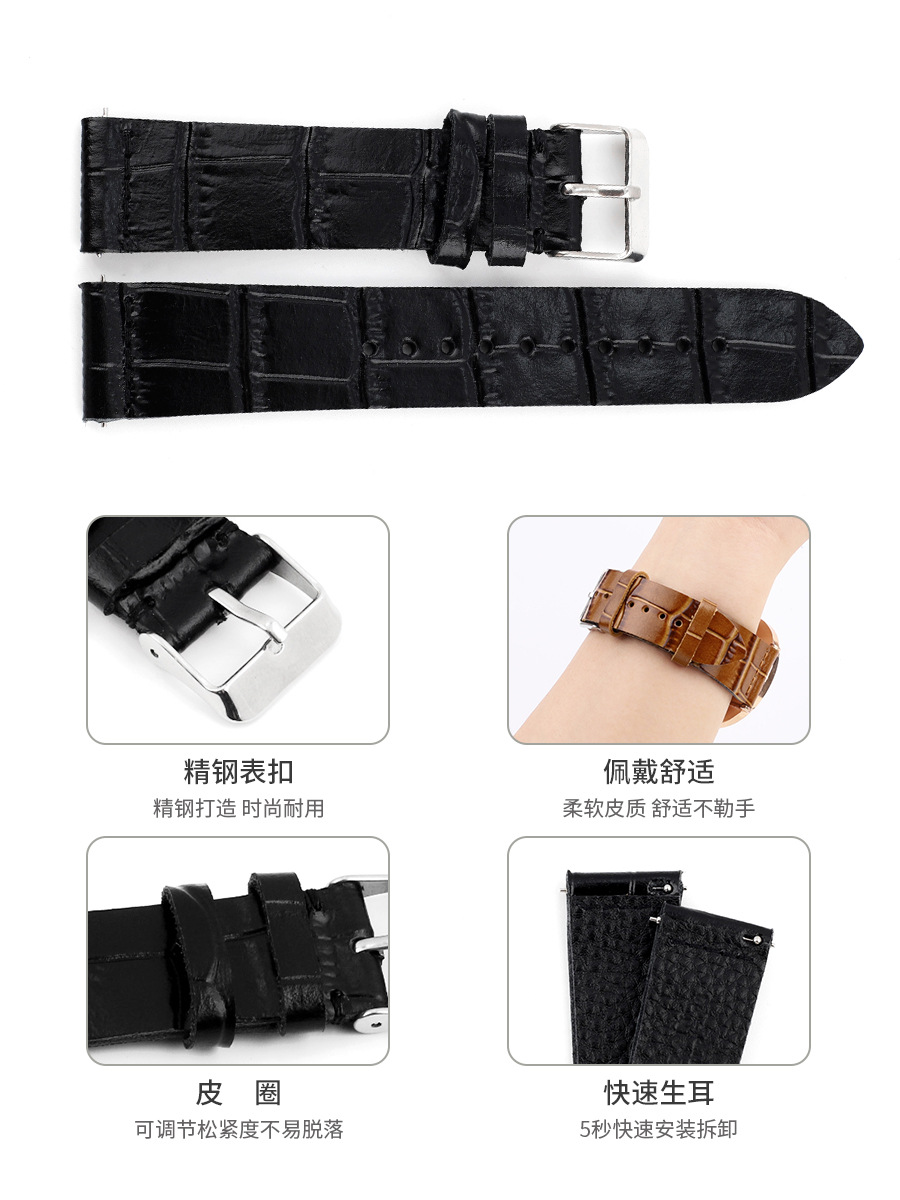 メンズレディース本革牛革個性多孔性真皮時計チェーン通気性精鋼針バックルは各種知能時計に適合しています。