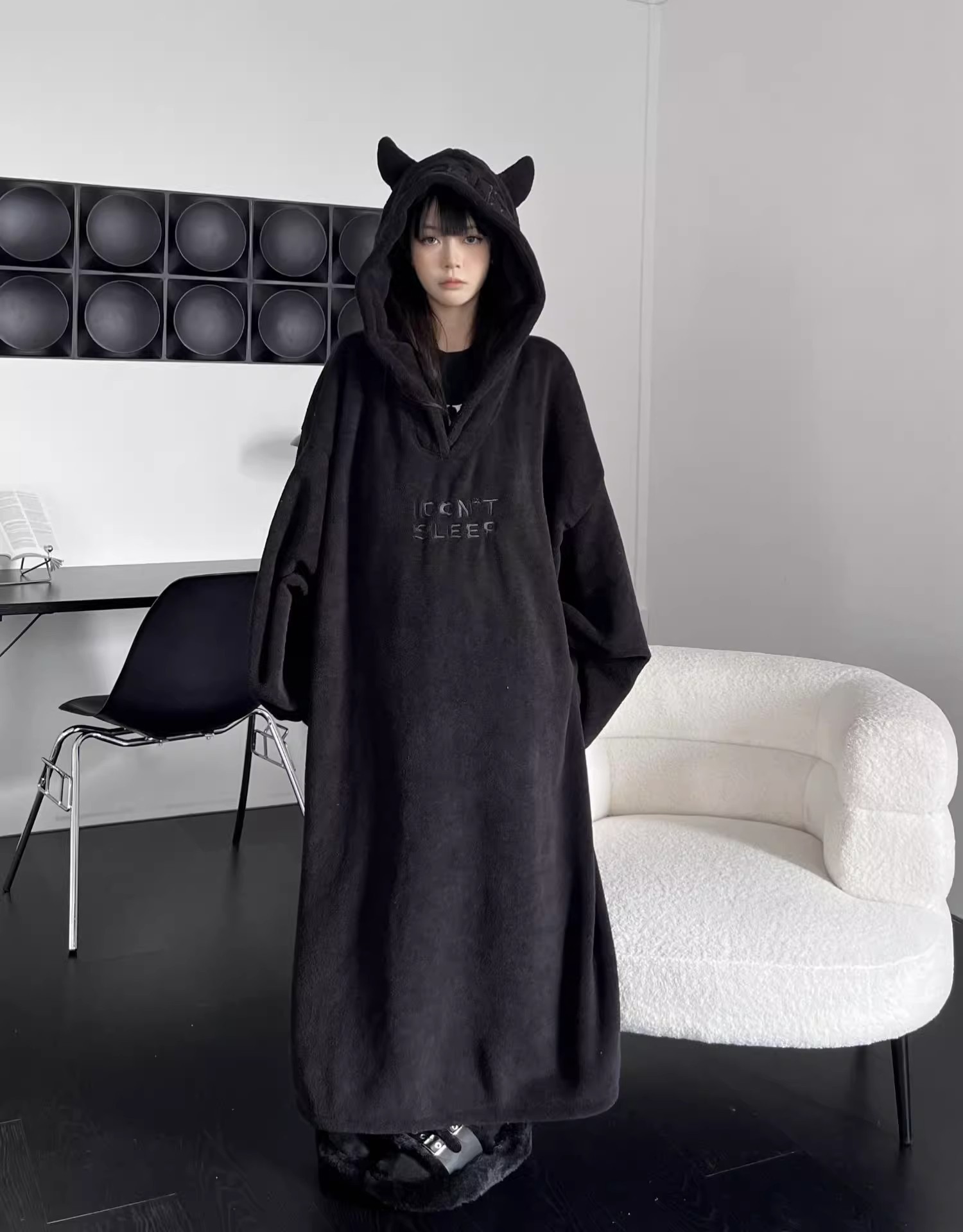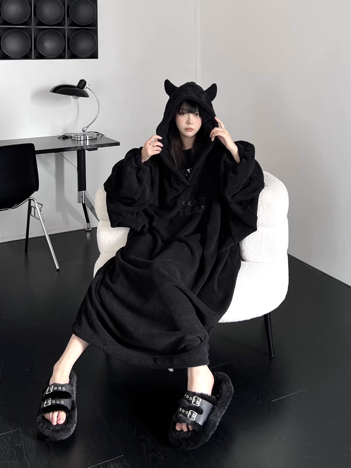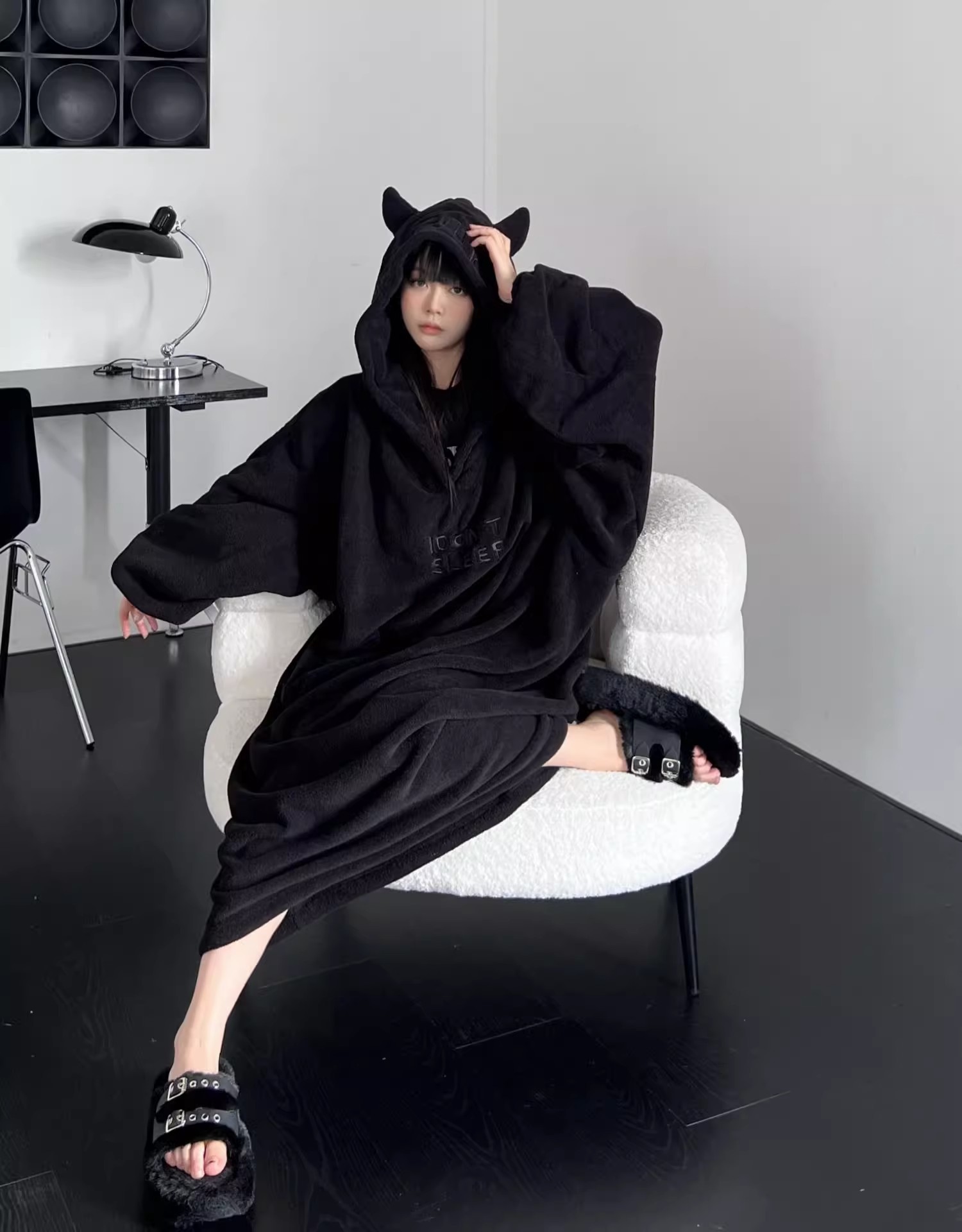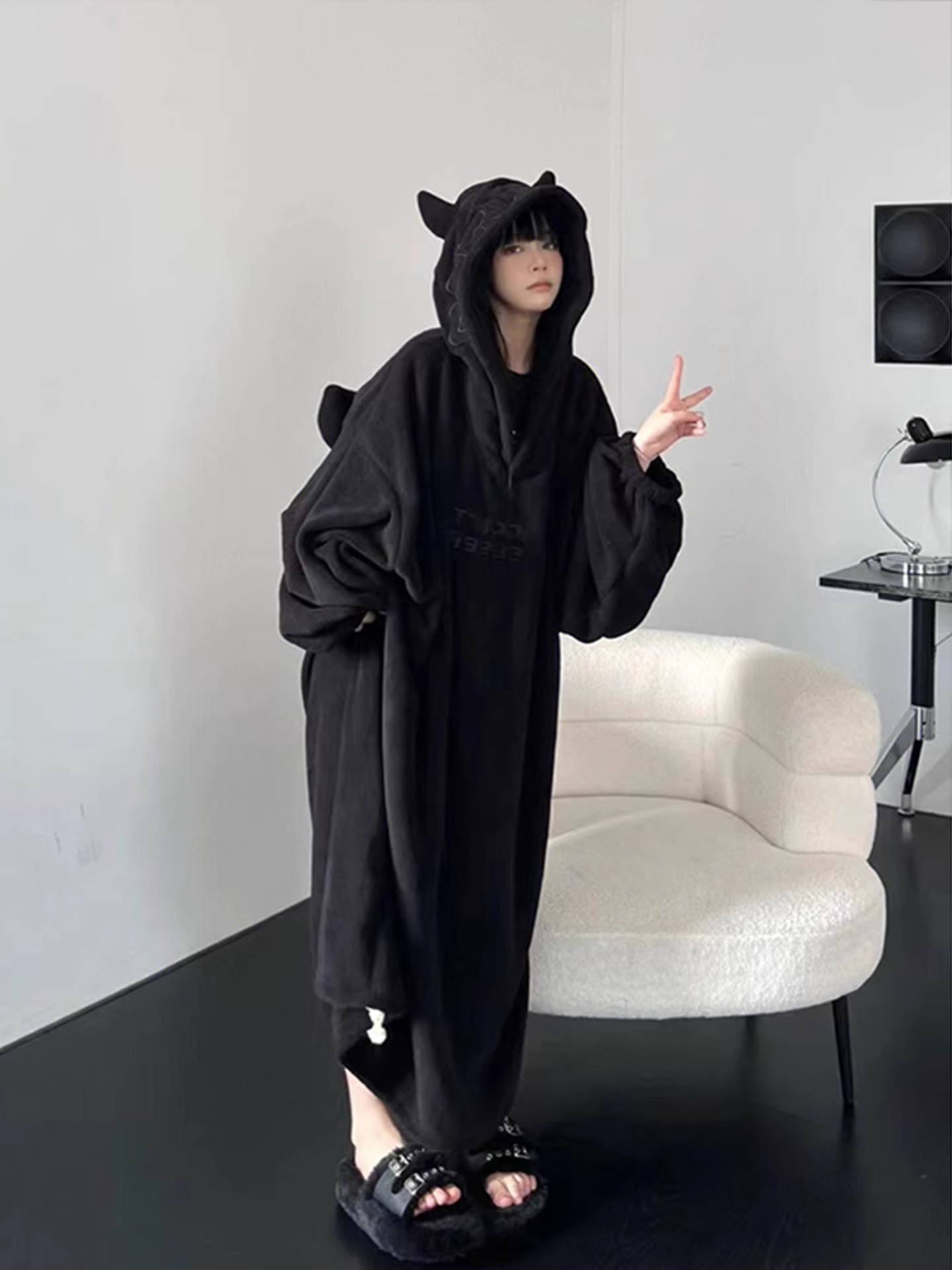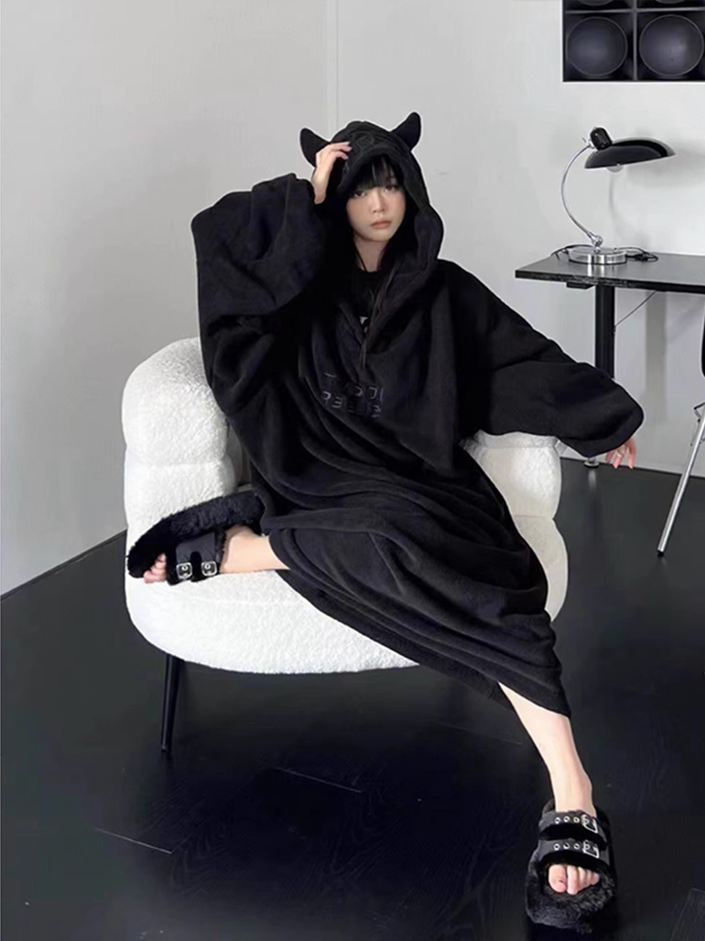ネットで話題の小悪魔風パーカーパジャマ レディース 冬用 コーラルフリース 可愛い 韓国風 面白いスタイル ルームウェア 雰囲気のあるホームウェア