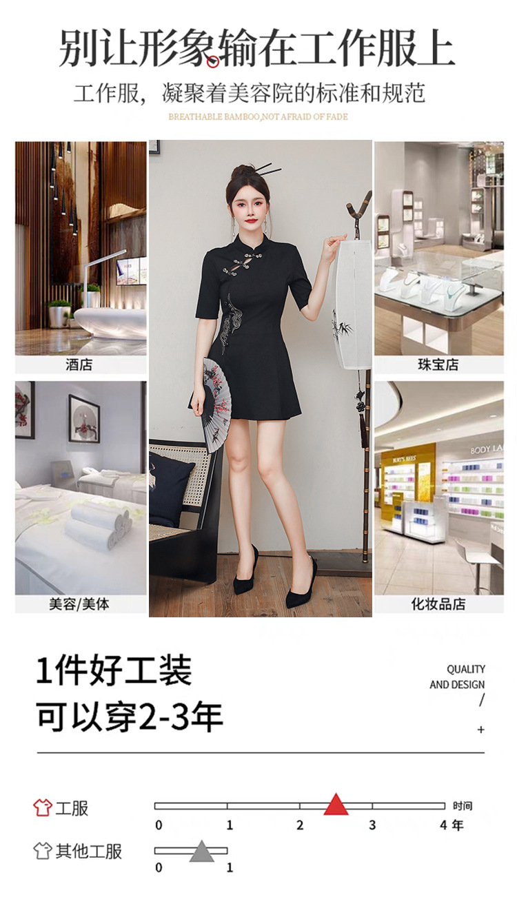 改良チャイナドレス美容院作業服女性高級美容師足治療会気質ワンピース足浴工装