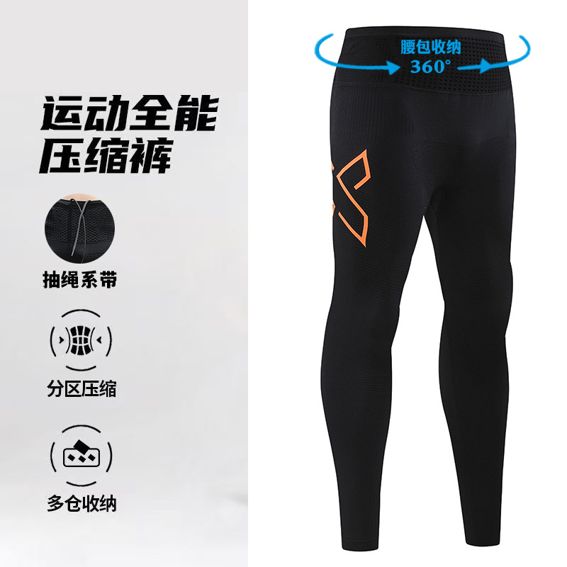 メンズレディース高弾性圧縮長ズボンフィットネスタイツアウトドア速乾ランニングパンツ高弾性リング式ウエストバッグ