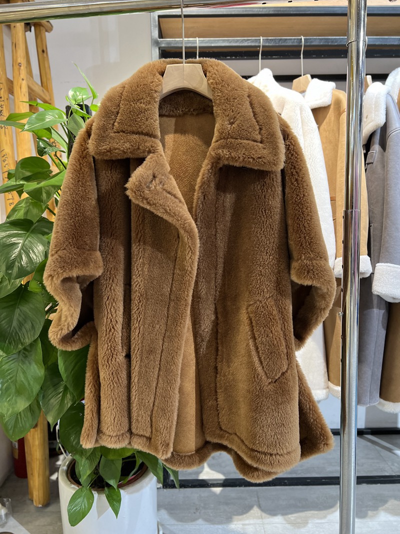 新しいテディベア韓国版純ウール複合毛皮一体コートの若いスーツの襟の羊の毛の上着の女性