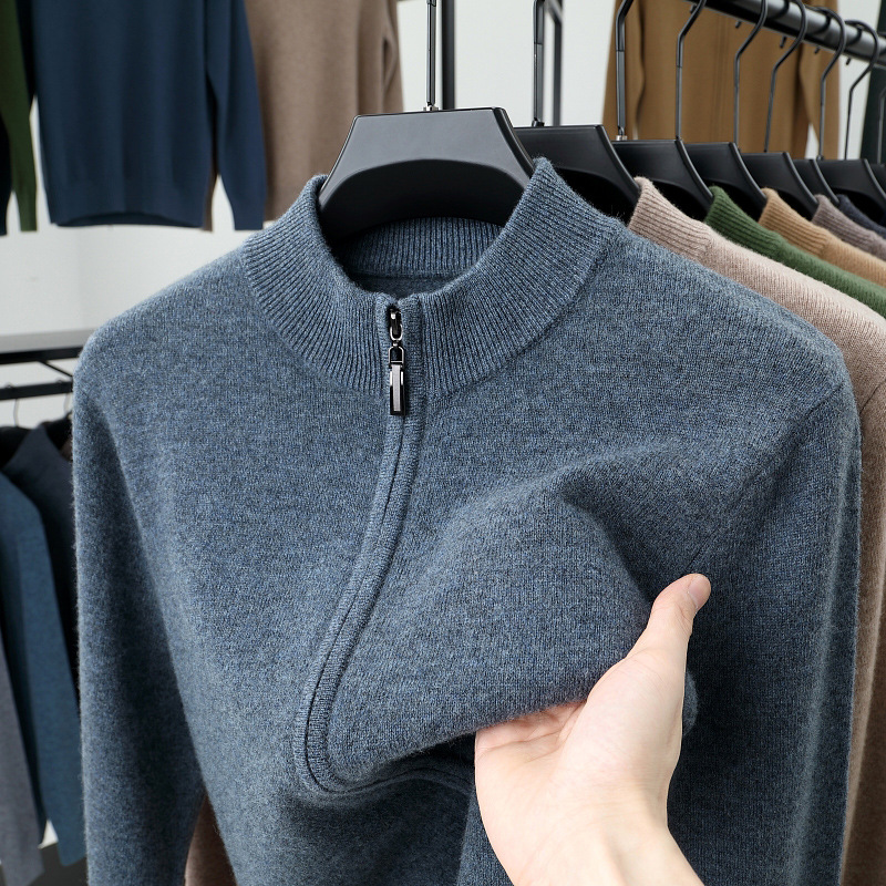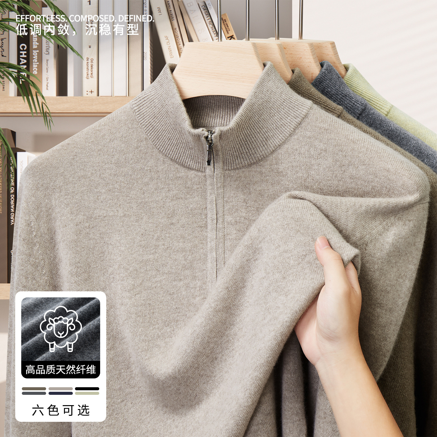 可机洗高级感羊毛衫男士半高拉链领休闲针织毛衣保暖长袖打底上衣