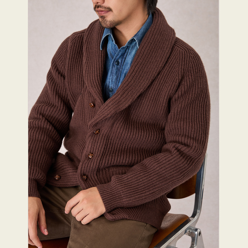 重いポンドの羊のウールの襟をめくってニットのカーディガンのセーターのオーバーの男性の経典のイギリス式の復古の厚い青果の襟のセーター