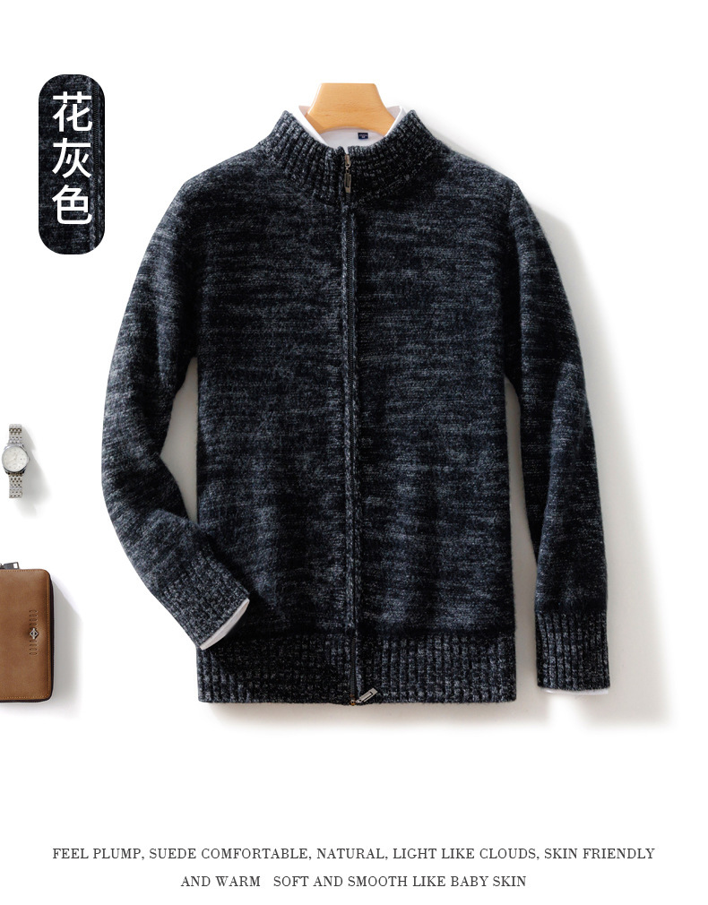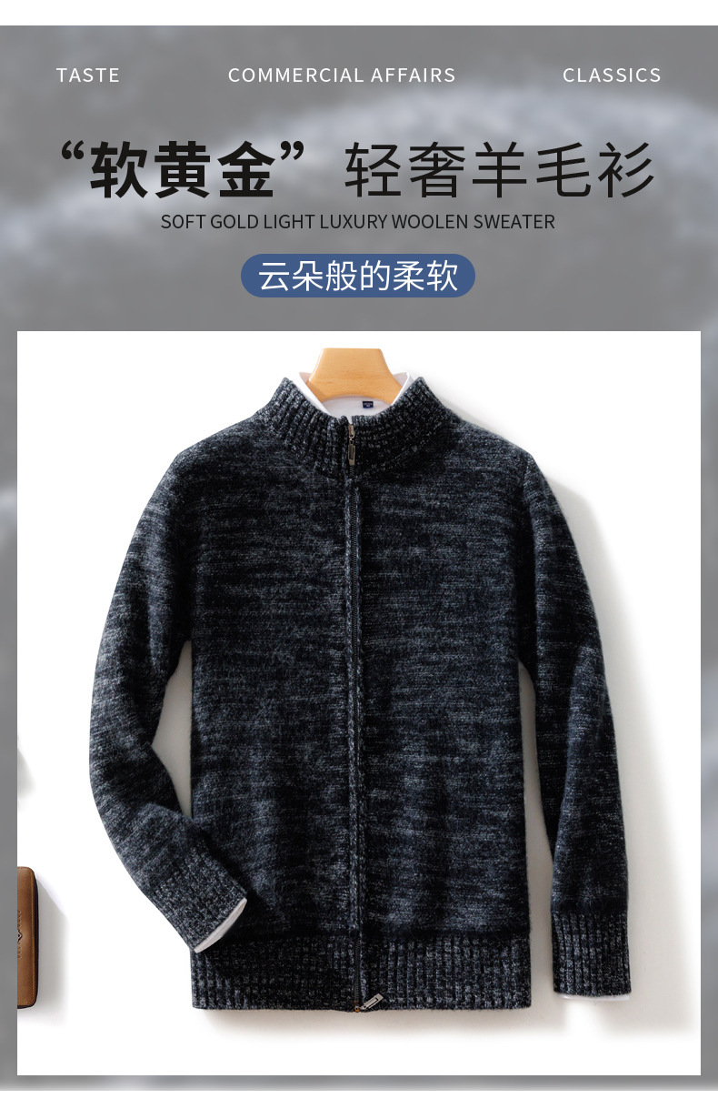 羊毛衫男新款轻奢开衫中年休闲加厚100纯羊毛针织内搭亲肤毛衣男
