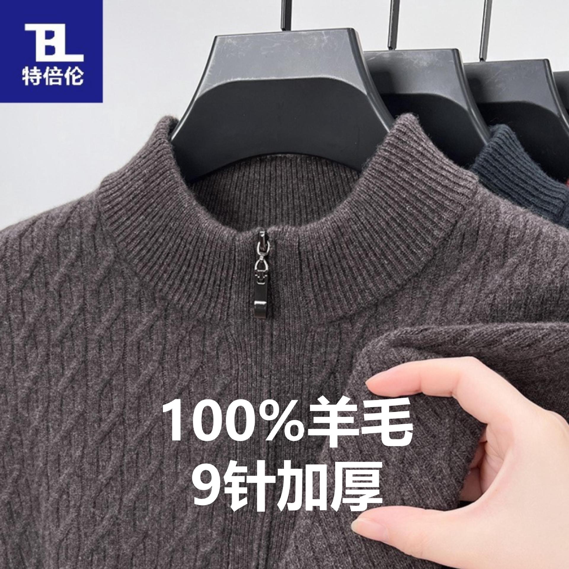 濮院羊毛衫100%绵羊毛男士9针加厚冬季新款半拉链长袖羊毛衫男批