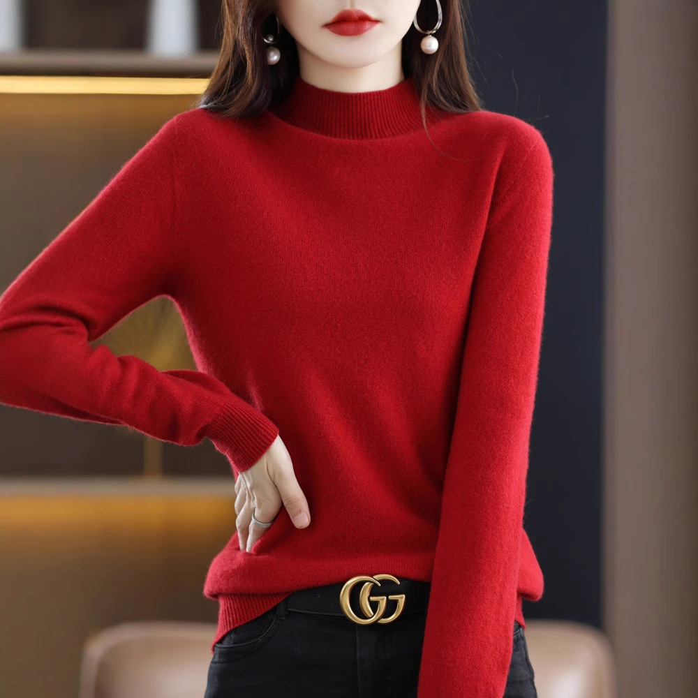 2025年秋冬新作 レディース ハーフタートルネック インナー セーター 無地 ニットウェア 女性用 大きいサイズ