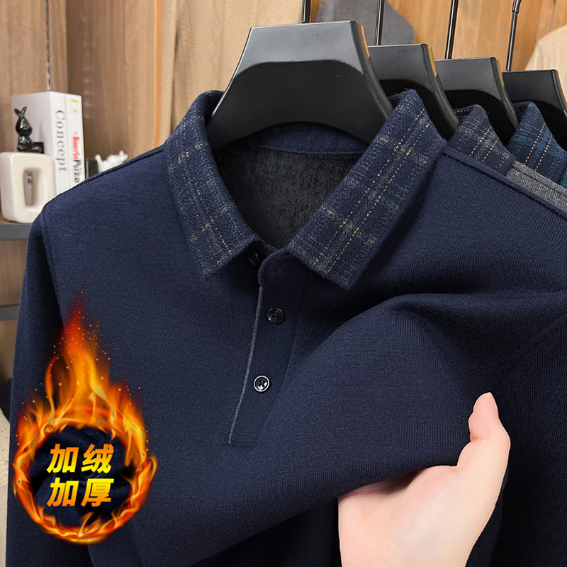 加绒毛衣男中老年冬季休闲高档翻领加厚保暖一体绒针织打底羊毛衫