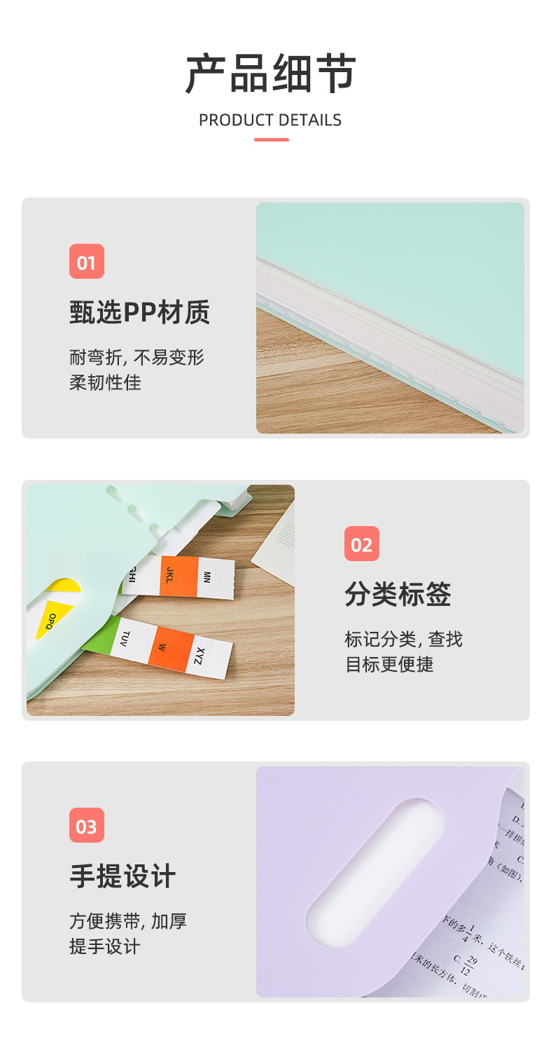 メーカー現物純色ファイル学生試巻a4オルガンバッグキャンディー色アニメかわいい収納袋卸売り